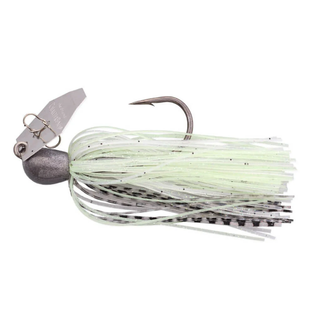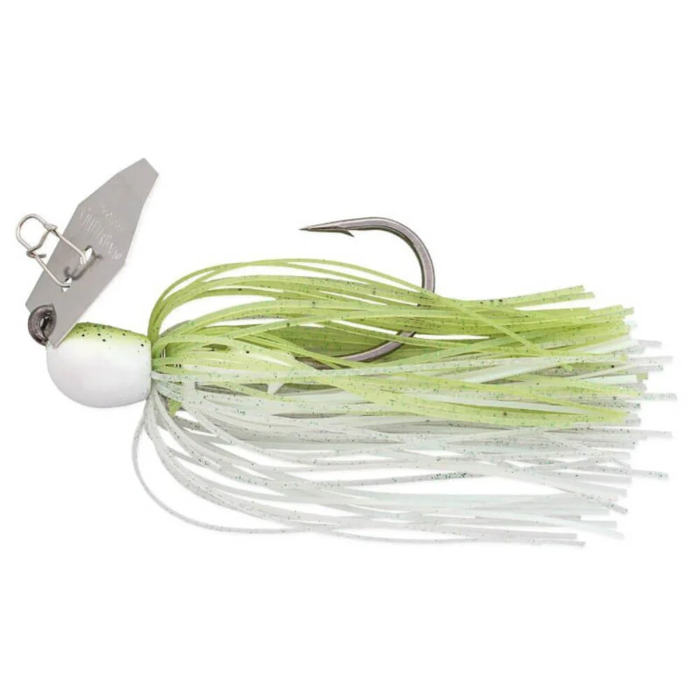 Der Z-Man ChatterBait Mini Max ist ein in verschiedenen Gewichten erhältlicher Chatterbait, welcher speziell an den Zielfisch Barsch angepasst wurde. Doch auch stattliche Döbel und der ein oder andere Hecht schnappen bei so einem Leckerbissen gerne mal zu. Aus diesem Grund wurde der verbaute 2/0 Haken extra stabil gewählt, um auch größeren Beifängen standzuhalten. Für die meiste Aufmerksamkeit sorgt sicherlich das Blade, welches bei diesem Modell in der Größe an die gestreiften Räuber angepasst und verkleinert wurde. Dennoch vibriert es ausreichend, um Raubfische auch über weite Distanzen anzulocken. Für einen zusätzlichen Reiz und das nötige Volumen sorgen die feinen Silikonfransen, welche verführerisch pulsieren. Um ein Durchtrennen durch scharfe Hechtzähne zu vermeiden, ist der Silikon-Skirt mit einem Draht befestigt, so hat Meister Esox keine Chance. Schon für sich genommen ist dieser Köder ein kleines Highlight, doch erst mit dem passenden Trailer wird er zur echten Geheimwaffe. Hierbei haben sich diverse Softbaits zwischen 7 – 10 cm bewährt, egal ob Paddletail, Twister, Pin– und V-Tails deiner Kreativität sind kaum Grenzen gesetzt. Überzeuge dich selbst von der Effektivität dieses Ködertyps und hol dir den Z-Man ChatterBait Mini Max.