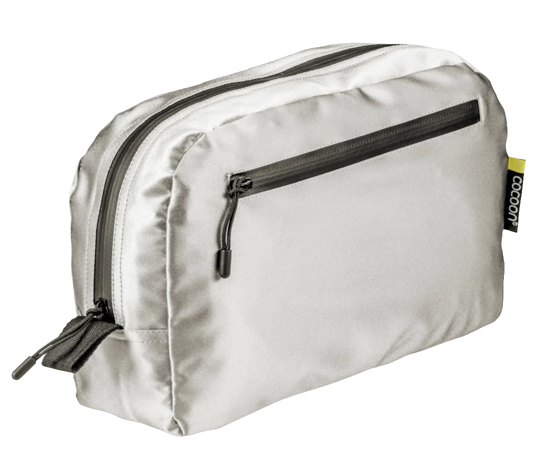 Geräumige Toilettentasche aus 100% luxuriöser Seide mit wasserdichter, schmutzabweisender , dünner TPU Laminierung auf der Innenseite. Sie schützt das Reisegepäck vor undichten Shampooflaschen und anderen Flüssigkeiten. Mit YKK Aqua Guard Water Repellent Zipper.
