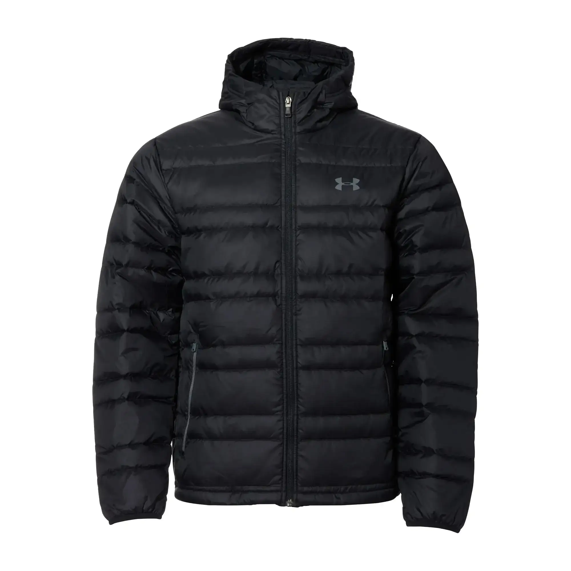 Die Under Armour Daunenjacke Down Hooded schwarz bietet ein Höchstmaß an Wärme. Außerdem ist sie dank Storm-Technologie wasserabweisend, ohne die Atmungsaktivität einzuschränken. Das leichte Gewebe bietet hervorragenden Tragekomfort und Strapazierfähigkeit. In sicheren Seitentaschen mit Zip kannst Du persönliche Gegenstände oder kleine Tools verstauen. Die dreiteilige Kapuze mit Gummizug und verlängerter Krempe und der verlängerte, geformte Saum mit Zugkordel sorgen für verbesserte Abdeckung.