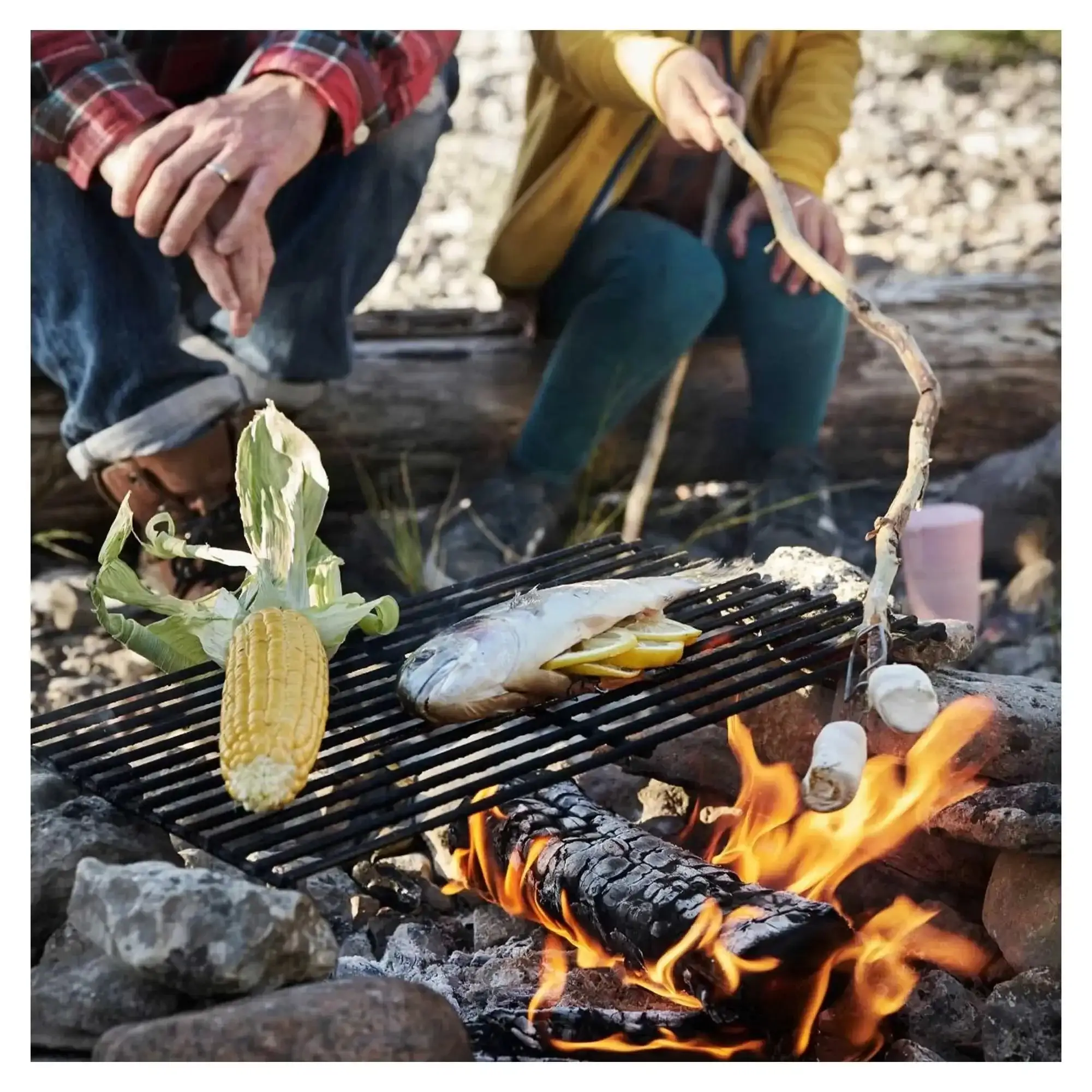 Die kompakte Grillgabel Grandpa’s FireFork besteht aus rostfreiem Stahl und wird mit einem Transportschutz aus biobasiertem Kunststoff geliefert. Das intelligente Design hält Lebensmittel sicher an ihrem Platz.