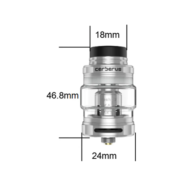Geekvape Cerberus Sub Ohm Verdampfer verfügt über 24mm Durchmesser, vereinfachtes Nachfüllsystem, wird standardmäßig mit einem 4ml Glasröhrchen geliefert und kann mit der enthaltenen Blase Ihres Lieblings-iquid auf 5,5 ml aufgerüstet werden. Geekvape Cerberus Tank nutzt Super-Mesh-Spule mit KA1 Material kompatibel mit TFV8 Baby Spule, die aus dem 0,2 Ohm besteht und ist auch mit einem Ausgangsbereich von 30 bis 90W und einem besten Bereich von 60 bis 80W enthalten. Wenn der Luftstrom durch zwei einstellbare Luftschlitze auf dem Boden in den Avenger eindringt, bringt der Geekvape Cerberus Tank erstaunlichen Geschmack und enormen Dampf. Mit dem vereinfachten Nachfüllsystem, das einfach zu öffnen ist, ermöglicht das Gewinde-Top-Füllsystem dem Benutzer das Nachfüllen.