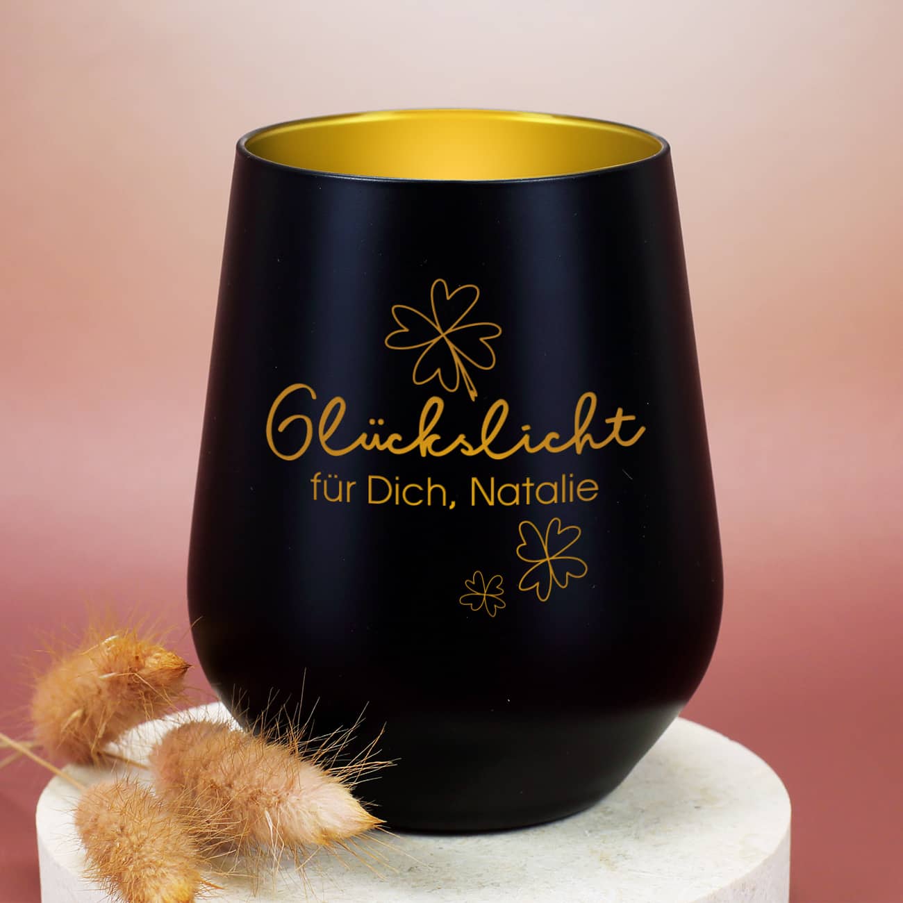 Glückslicht – Windlicht mit Ihrem Wunschtext graviert