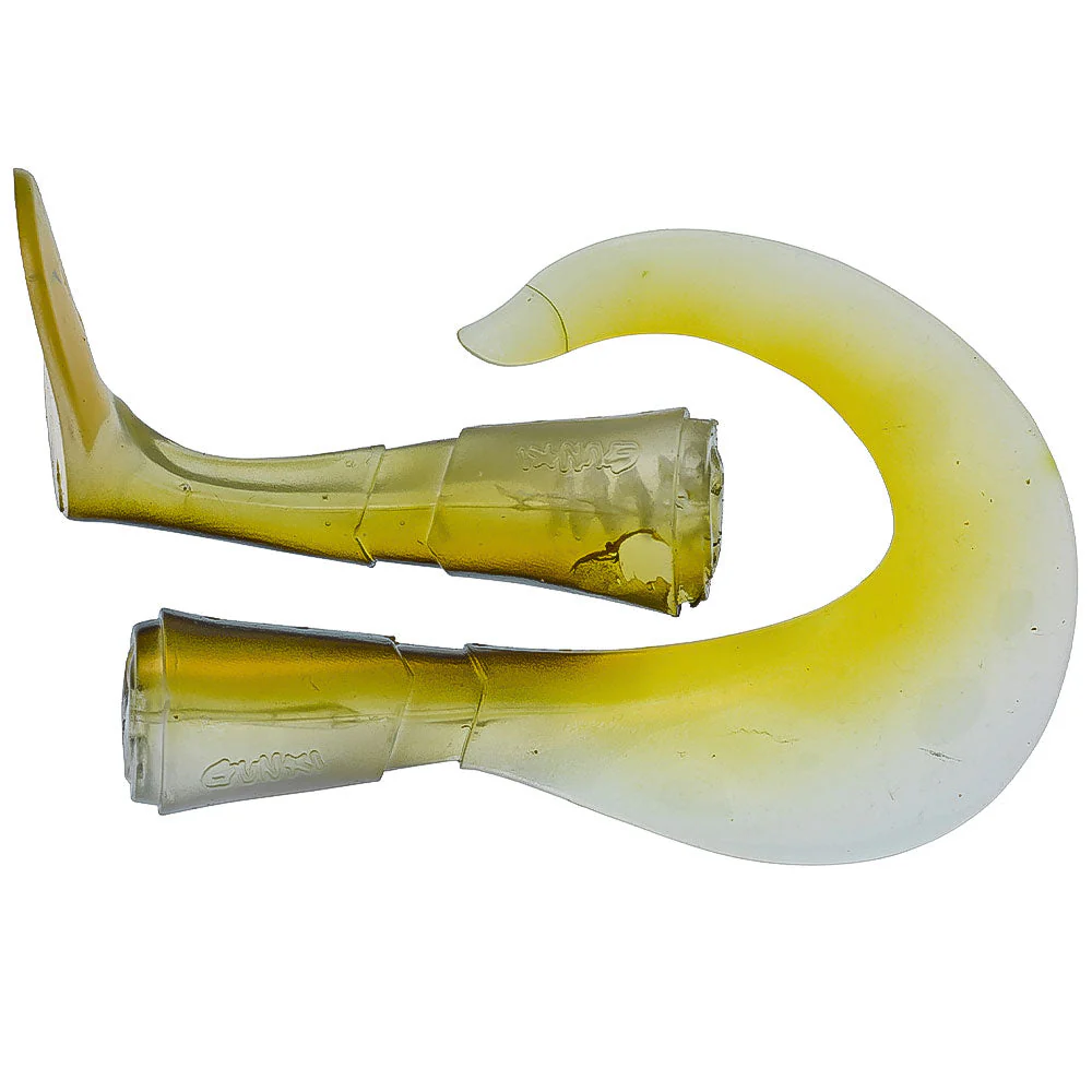 Mit dem Gunki Grouper 180 S – Spare Tail Set erhält man die Qual der Wahl. Und zwar die Wahl, ob man den Grouper mit einem Shad-Tail oder einem farblich identischen Curly-Tail fischen möchte. Während der Shad-Tail auch im Lieferumfang des Grouper 180 S enthalten ist, ist der Curly-Tail explizit nur als Nachrüst-Option erhältlich. Der Shad-Tail verursacht besonders starke Vibrationen, verstärkt die Rolling Action und lässt sich auch schneller fischen. Der Curly-Tail ist dagegen perfekt für die Tage geeignet, an denen es die Hechte langsam und verführerisch schlängelnd möchten. Auch vergrößert er die Silhouette und imitiert besonders große, fette Beute.