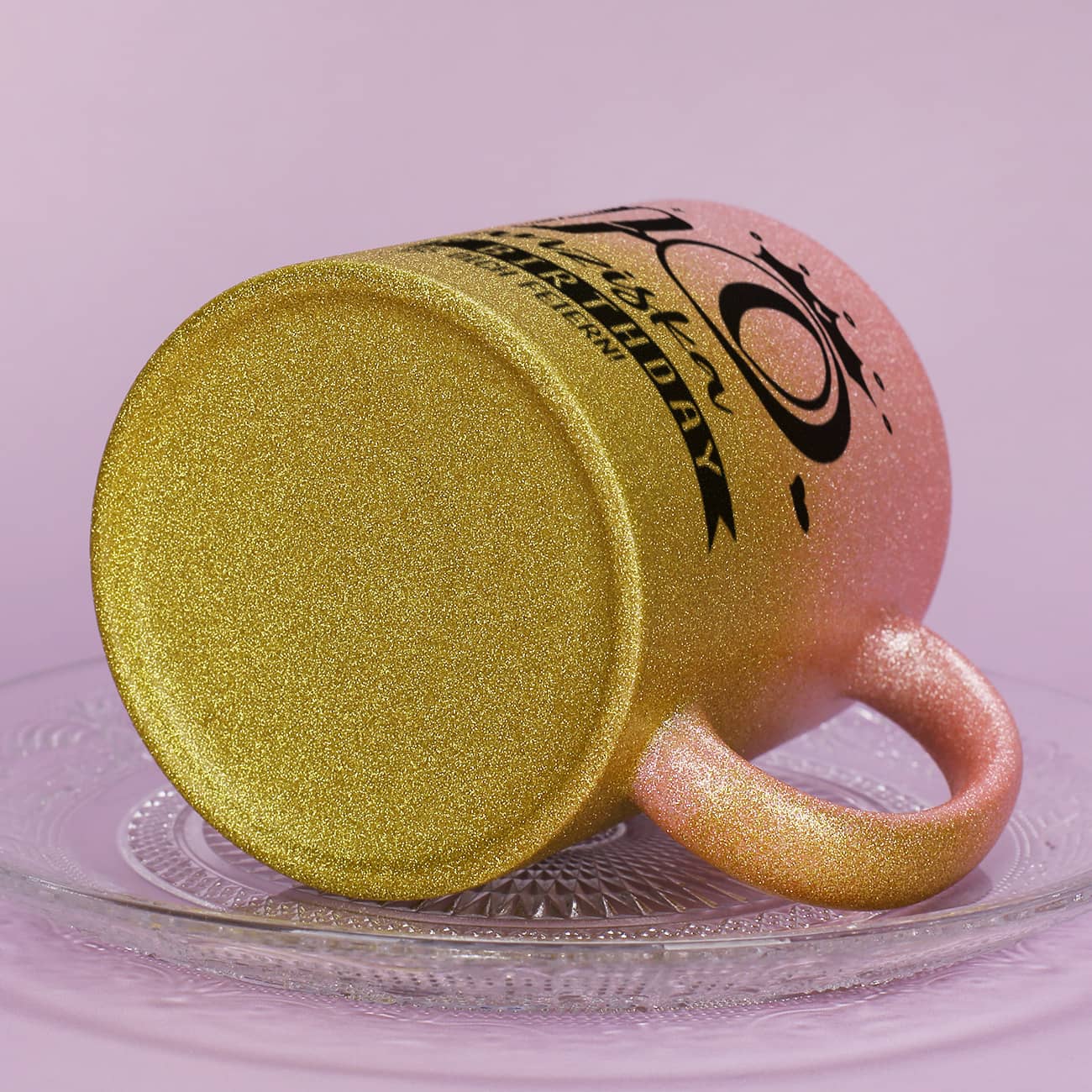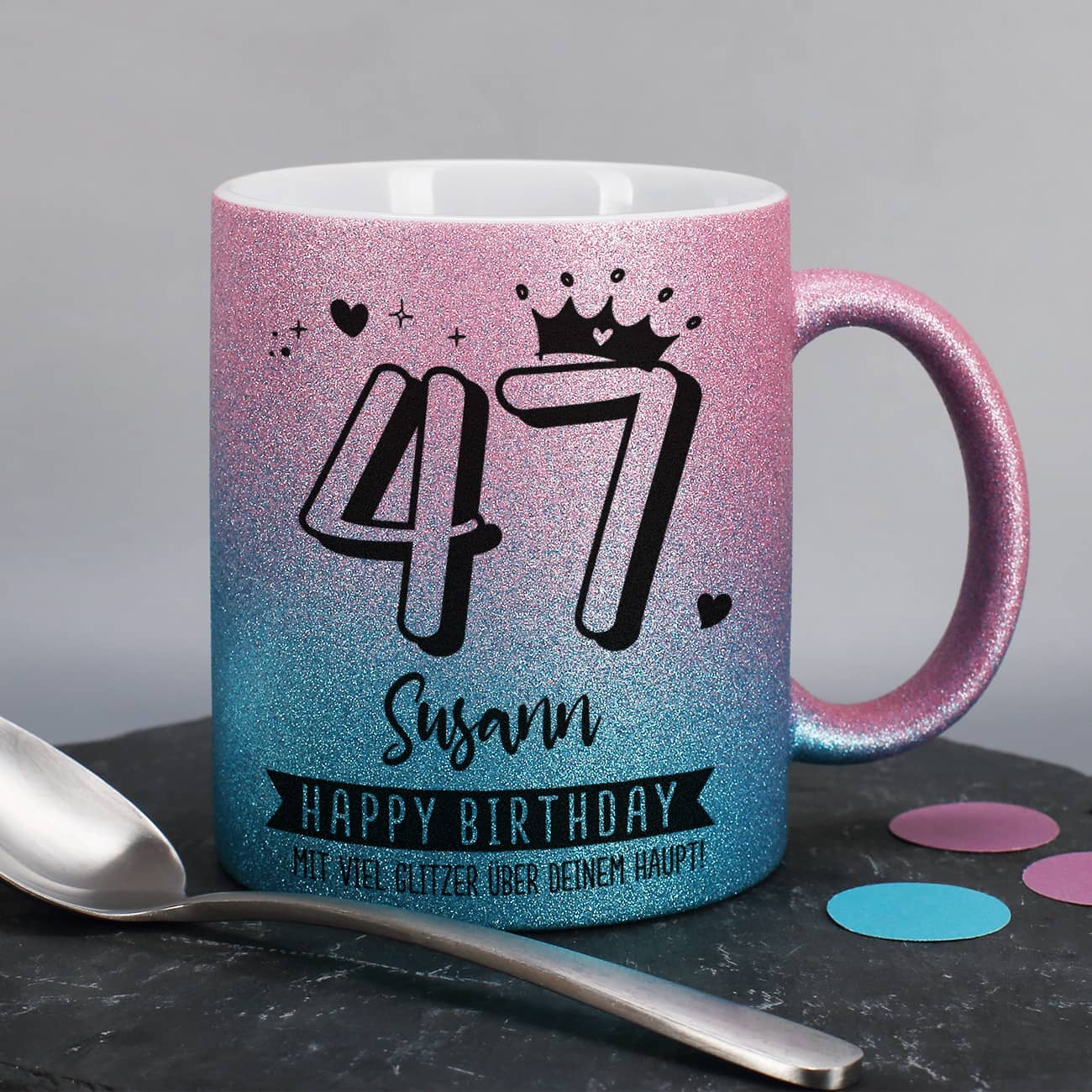 Tasse zum Geburtstag mit Glitzer – personalisiert mit Name, Alter & Text