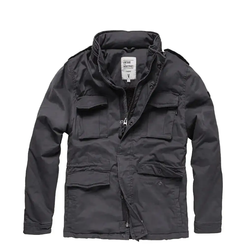 Die Vintage Industries Jacke Madison ist eine weich gefütterte Jacke mit schlanker Passform, versteckter Kapuze und klassischem Stehkragen mit Reißverschlussleiste und Klettverschluss. Dank der Taillen- und Bundregulierung ergibt sich ein individueller Tragekomfort. Der Frontreißverschluss mit Windschutzleiste verhindert das Eindringen von Wind und Kälte, während die verstellbaren Ärmelbündchen, die Schulterklappen und der Tunnelzug am Bundabschluss sie zu einem echten Hingucker machen. In vier Fronttaschen mit Patte und Druckknopf, zwei Einschubtaschen mit Druckknopf und einer Innentasche mit Klettverschluss können Sie kleinere Tools verstauen.