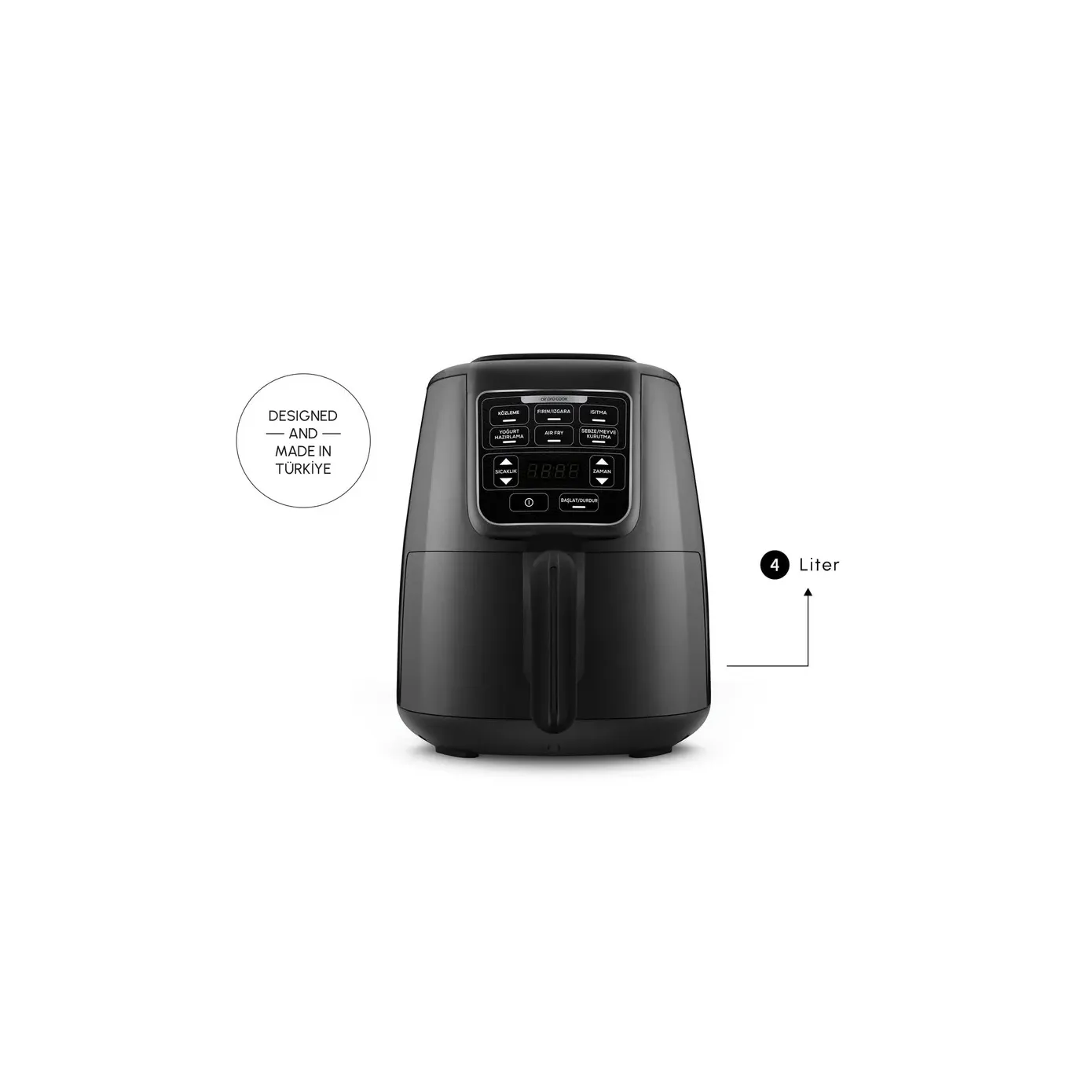 Obwohl die Karaca Air Köz nicht viel Platz auf der Theke einnimmt, können Sie mit ihrem 4 Liter großen Volumen genügend Mahlzeiten für alle zubereiten.
