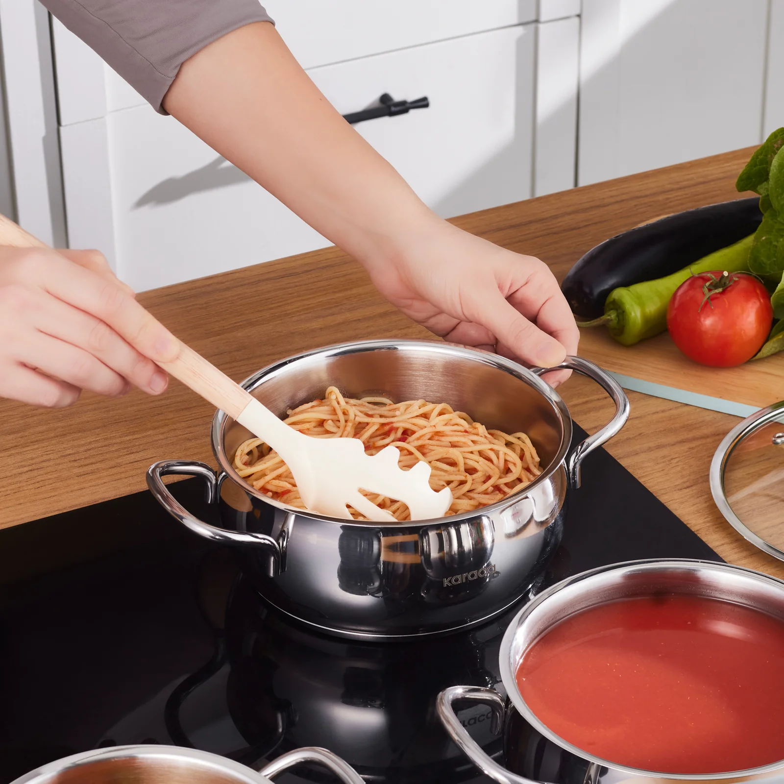 • Die Karaca-Stahltöpfe sind rost- und abriebbeständig. Der spezielle Energiekapselboden, der die Wärme zurückhält, sorgt für maximale Zeit- und Energieeinsparung. Enthält keine krebserregenden Stoffe und hält keine unangenehmen Gerüche oder Bakterien zurück.