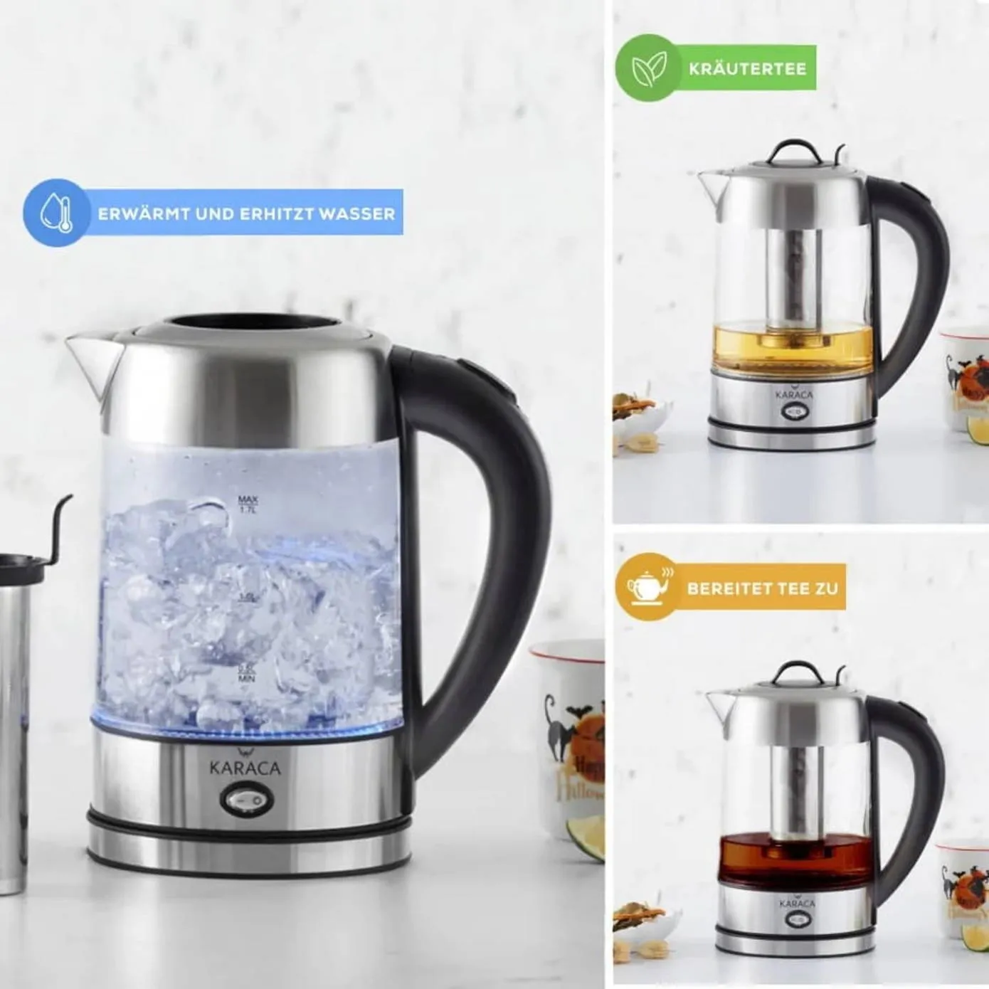 Karaca Glas Kräutertee Kocher mit LED Beleuchtung Inox, 1.7L, 2200W