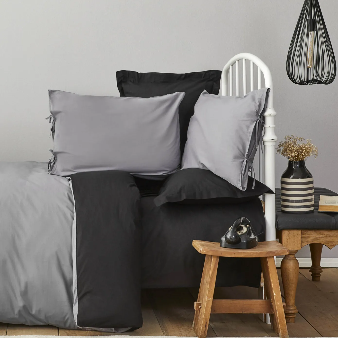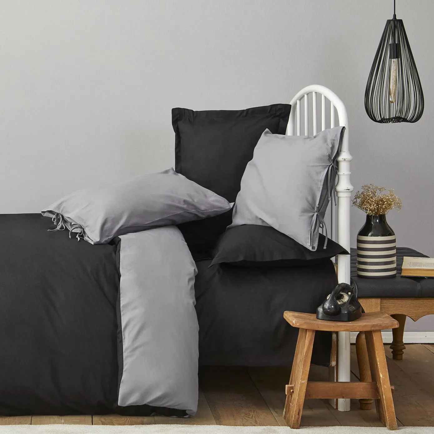 Karaca Home Basic Doppelseitig Doppelter Bettbezug, Schwarz Dunkel Grau