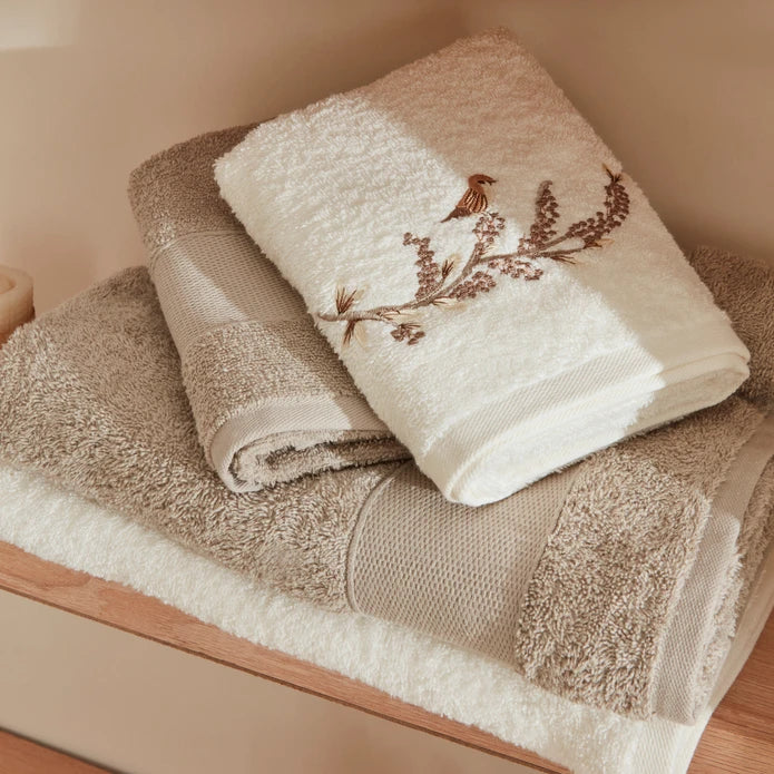 Karaca Home Bird 100% Baumwolle Familien-Badetuch-Set Creme-Hellgrau