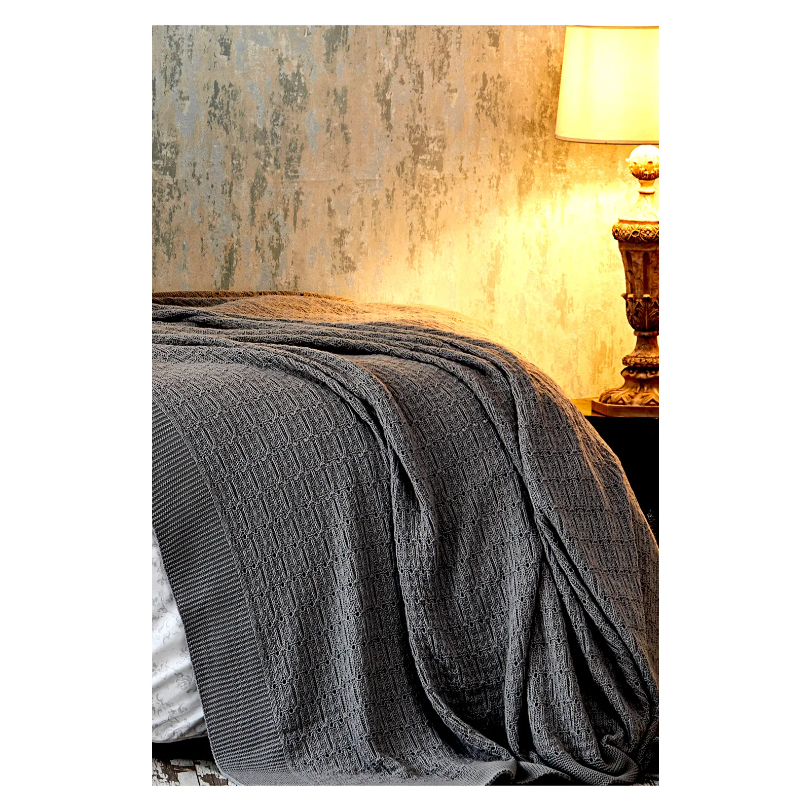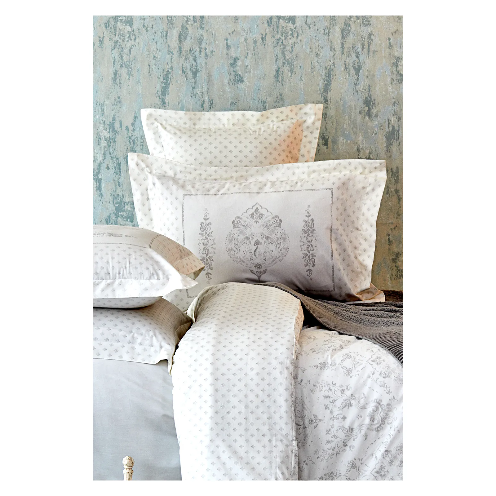 Karaca Home Eldora Bettbezug-Set mit grauer Strickdecke