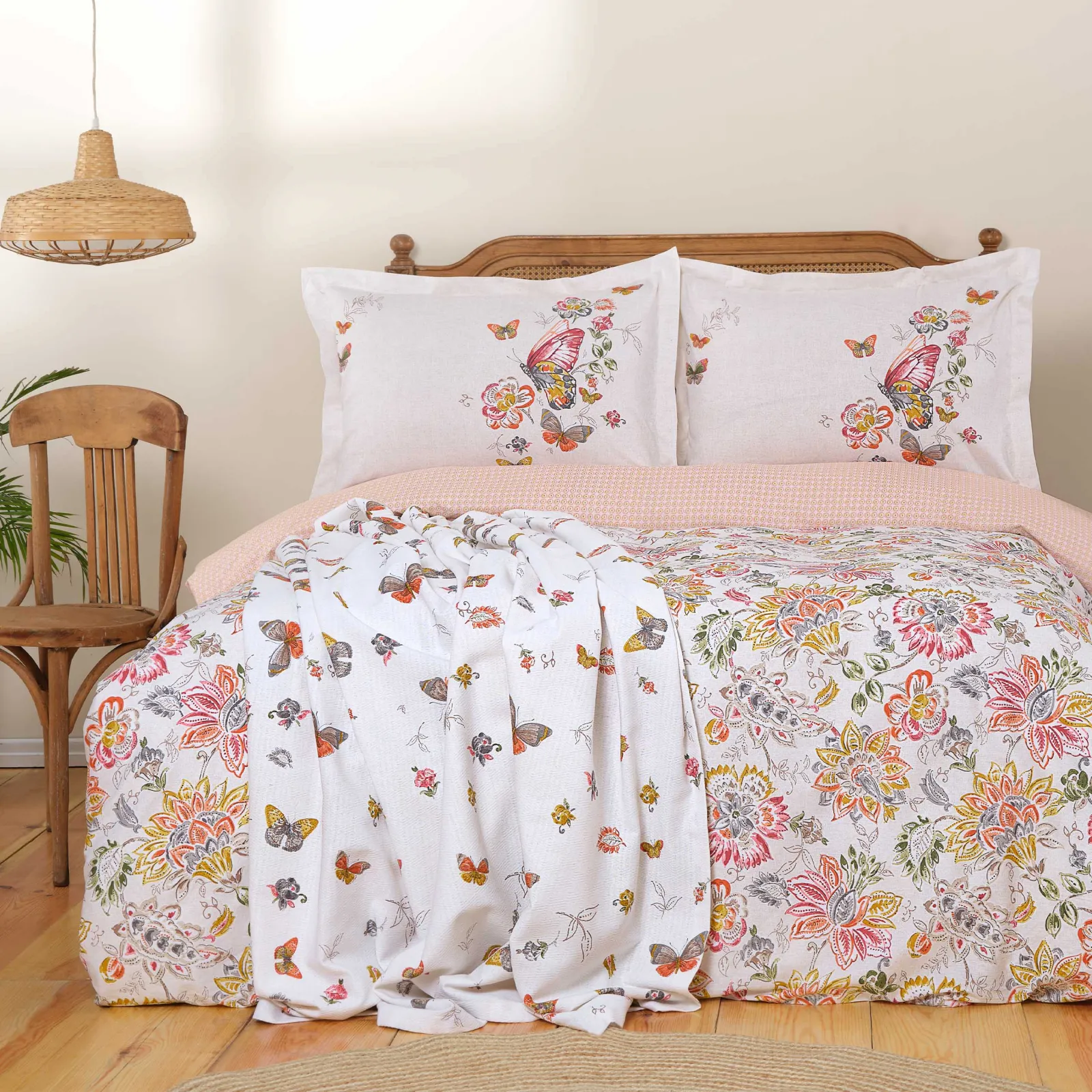 Karaca Home Lorena Bettbezugsset für zwei Personen aus 100 % Baumwolle in Rosa mit Bettdecke als Geschenk