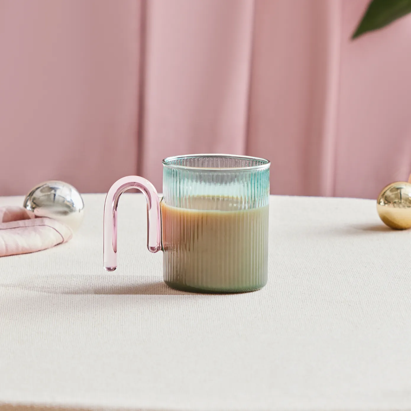 Karaca Miracle Blau Tasse, Rosa Henkel