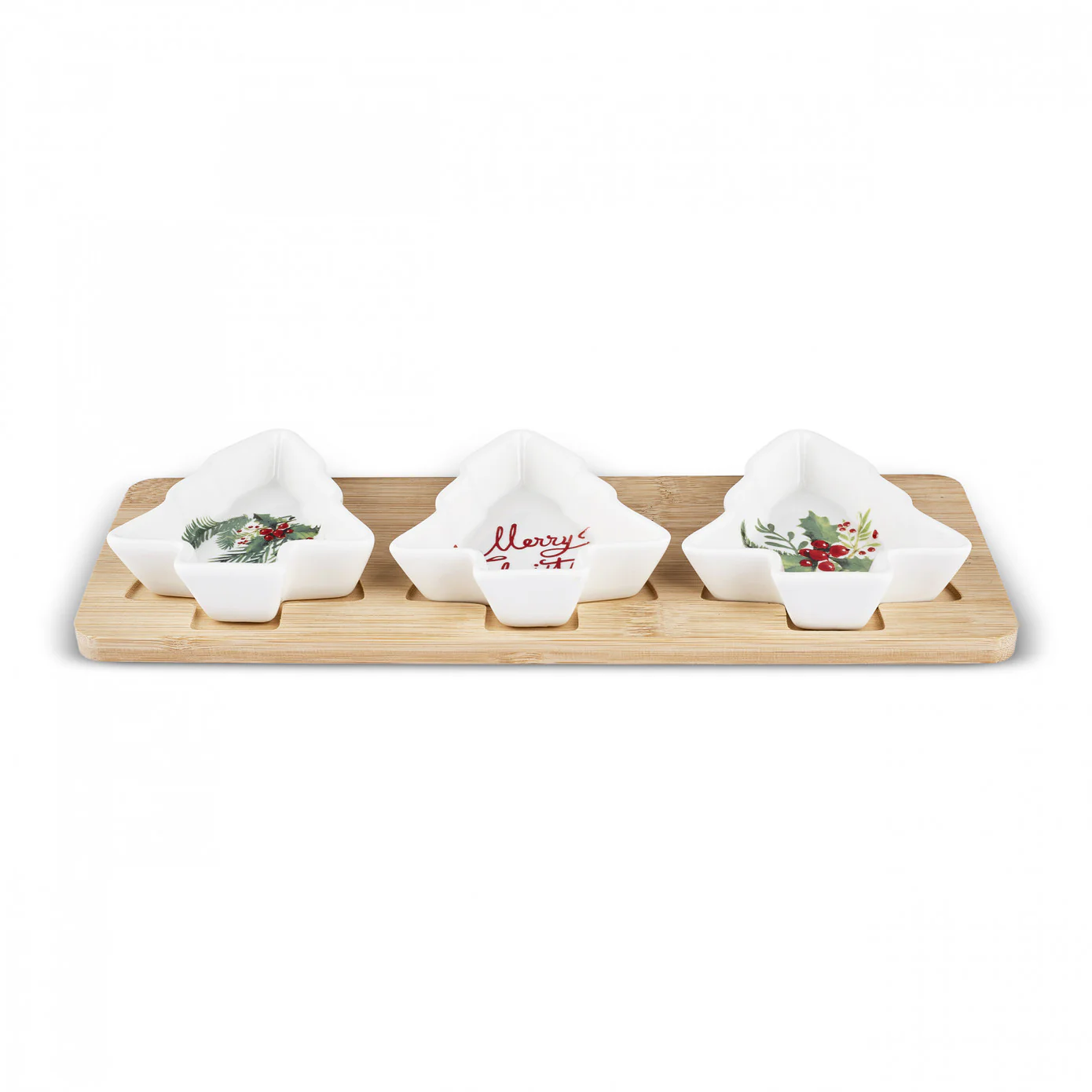 Karaca New Year Christmas Bamboo Snack Kiefer Baum 3 Stück Keks-Halter