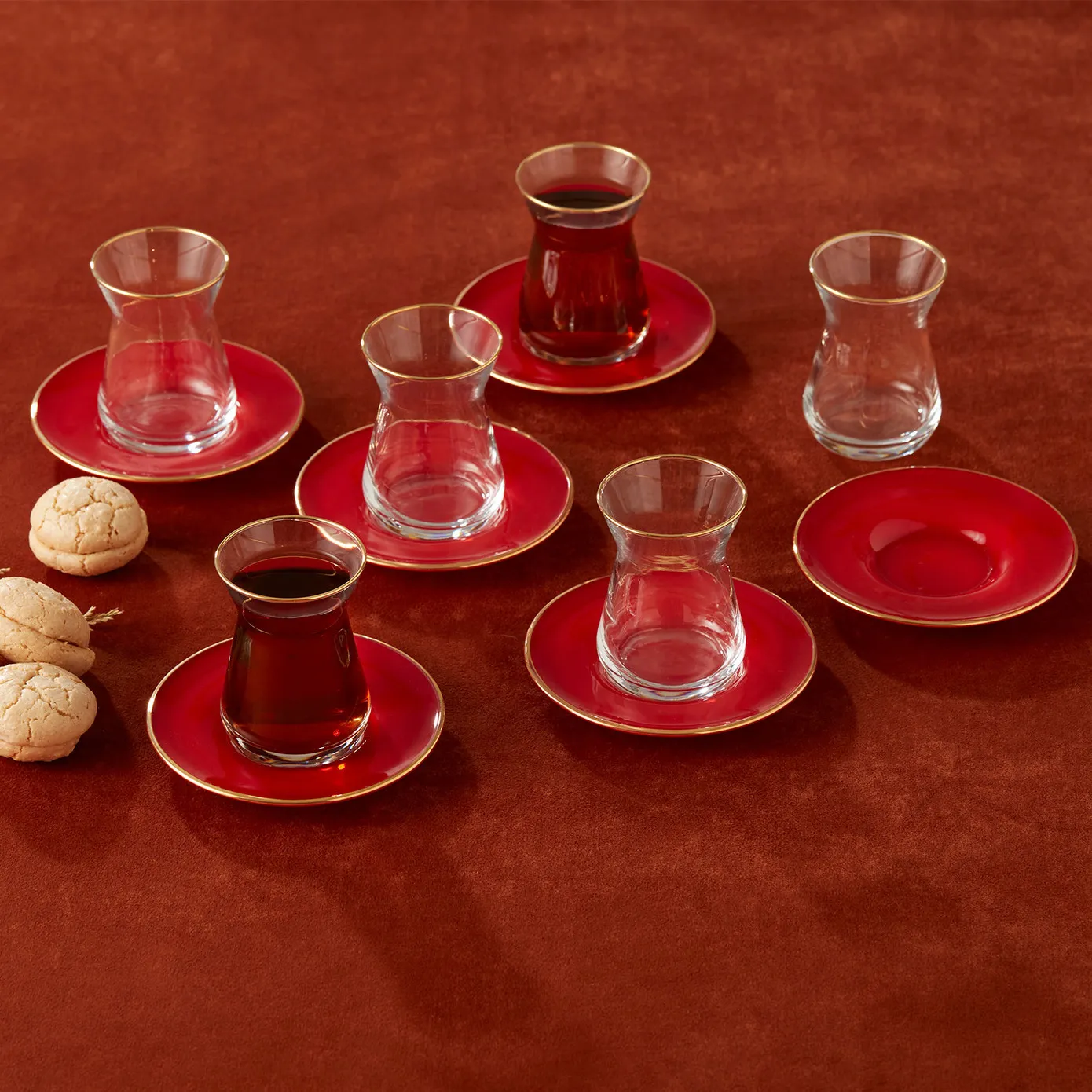 Karaca Retro Teeservice- Set für 6 Personen, Rot