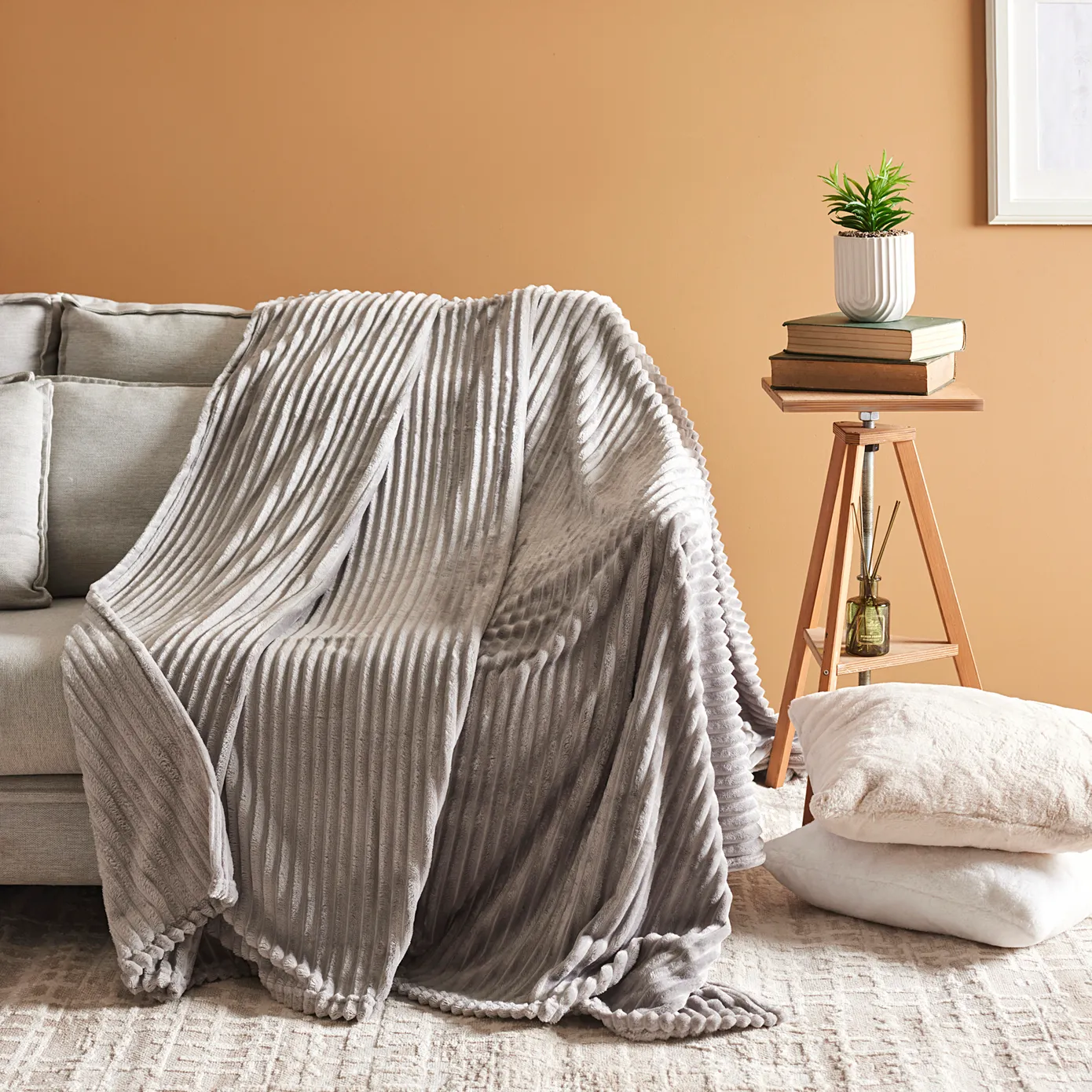 Karaca Ruby Stripe Wellsoft Einzel Decke, Grau