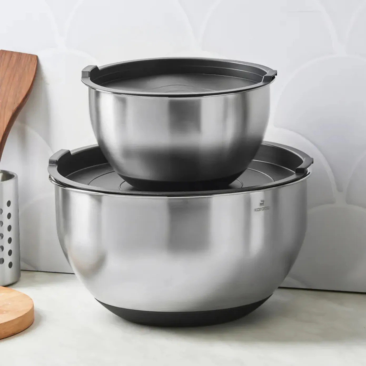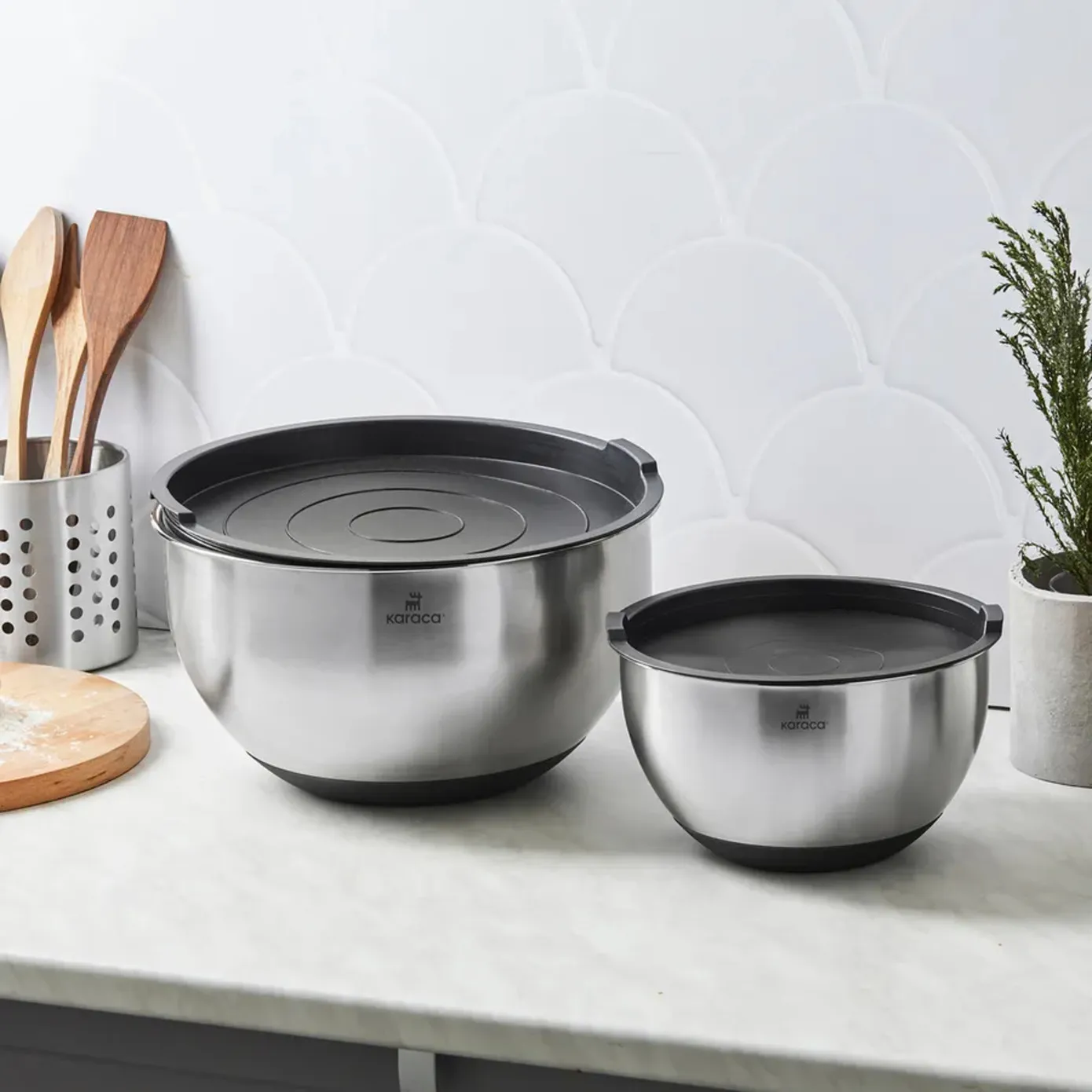 Karaca Rührschüsseln aus Edelstahl mit Deckel 4er-Set