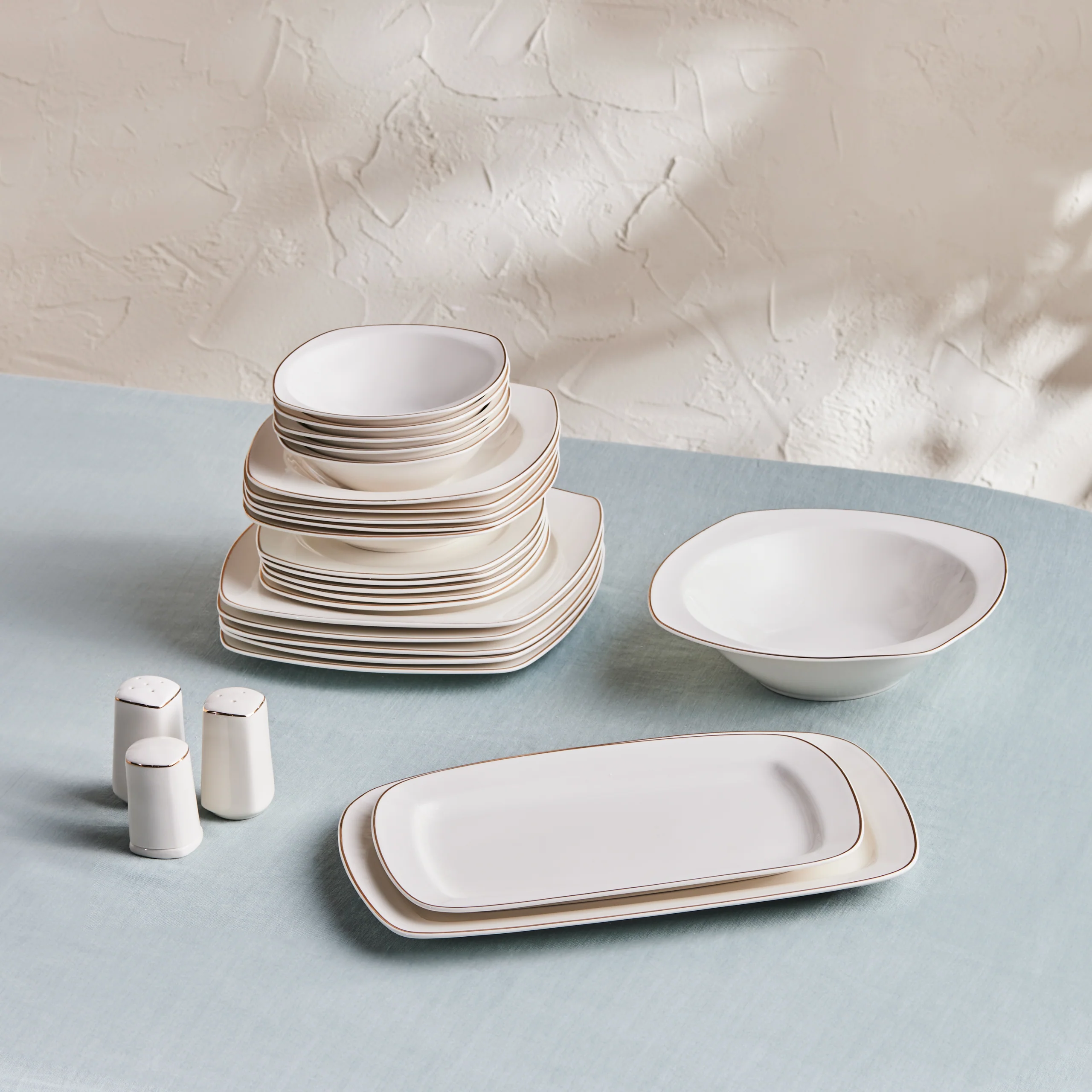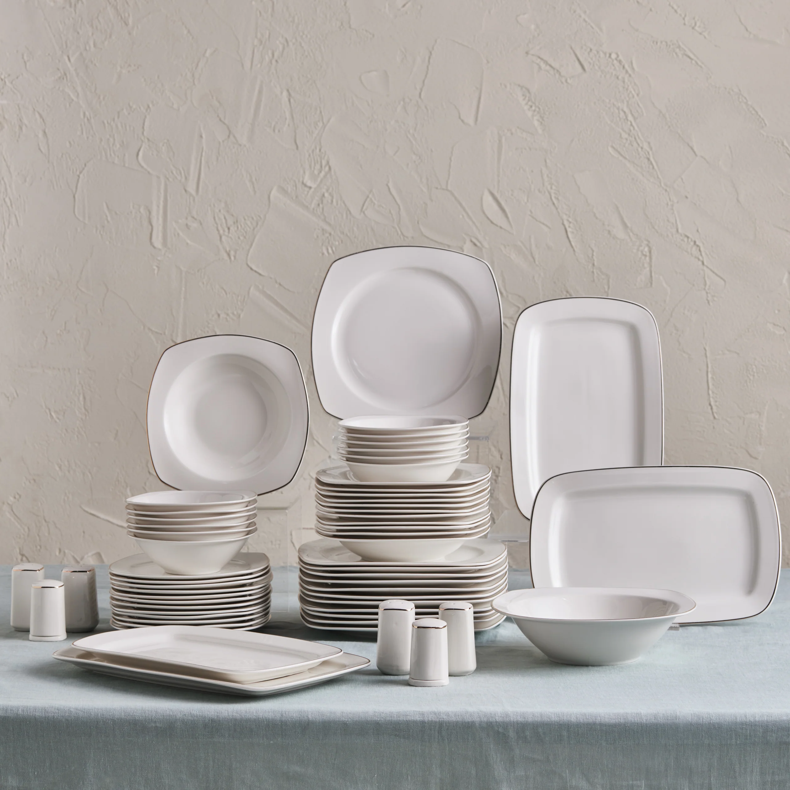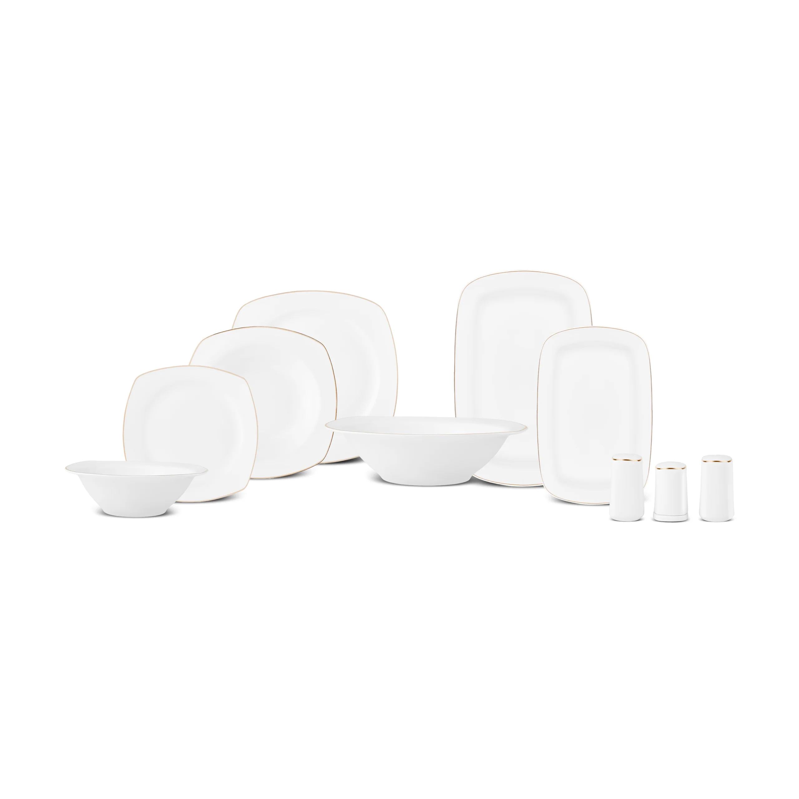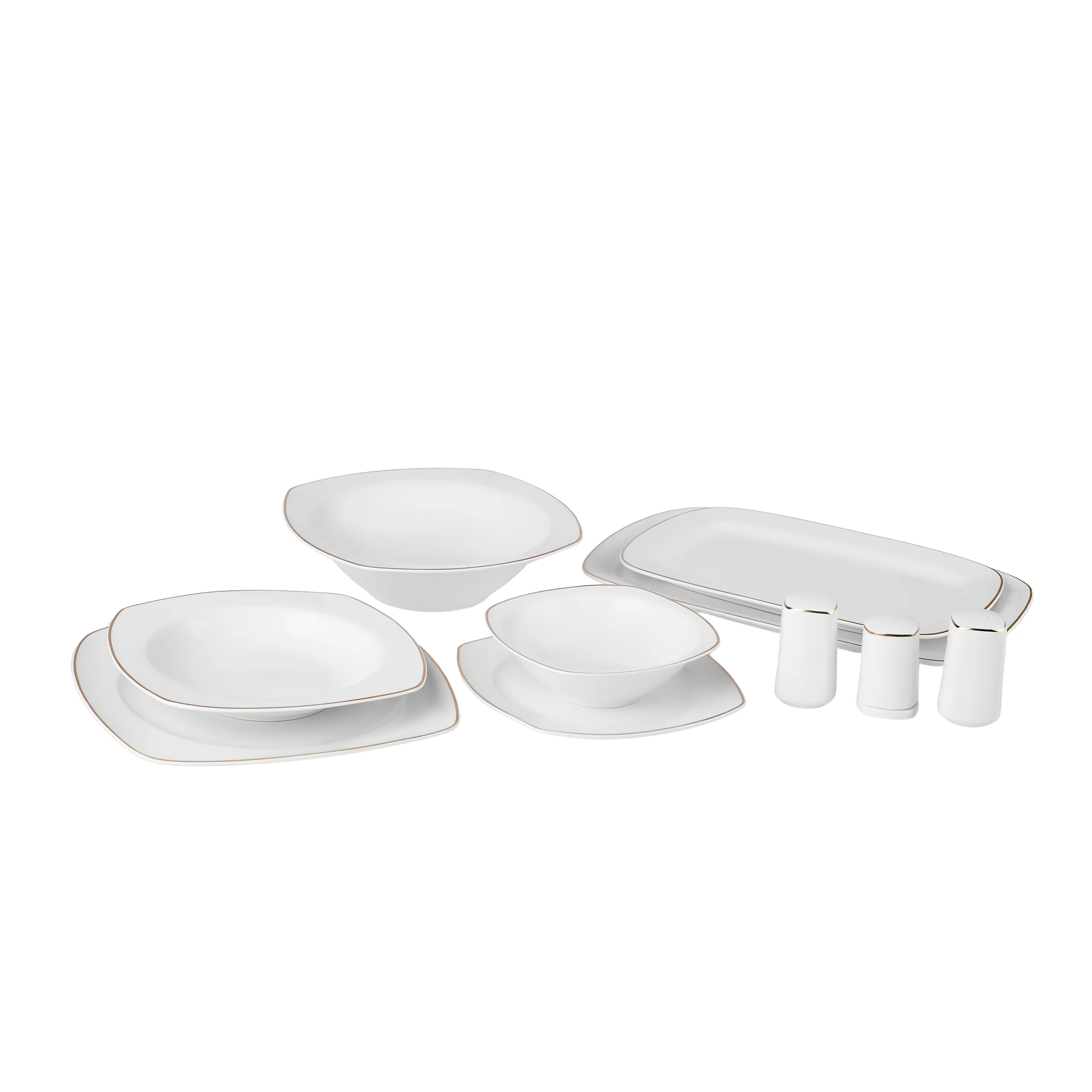 Karaca Timeless 59-teiliges Porzellan Halb-Quadratisches Dinner-Set für 12 Personen, Gold