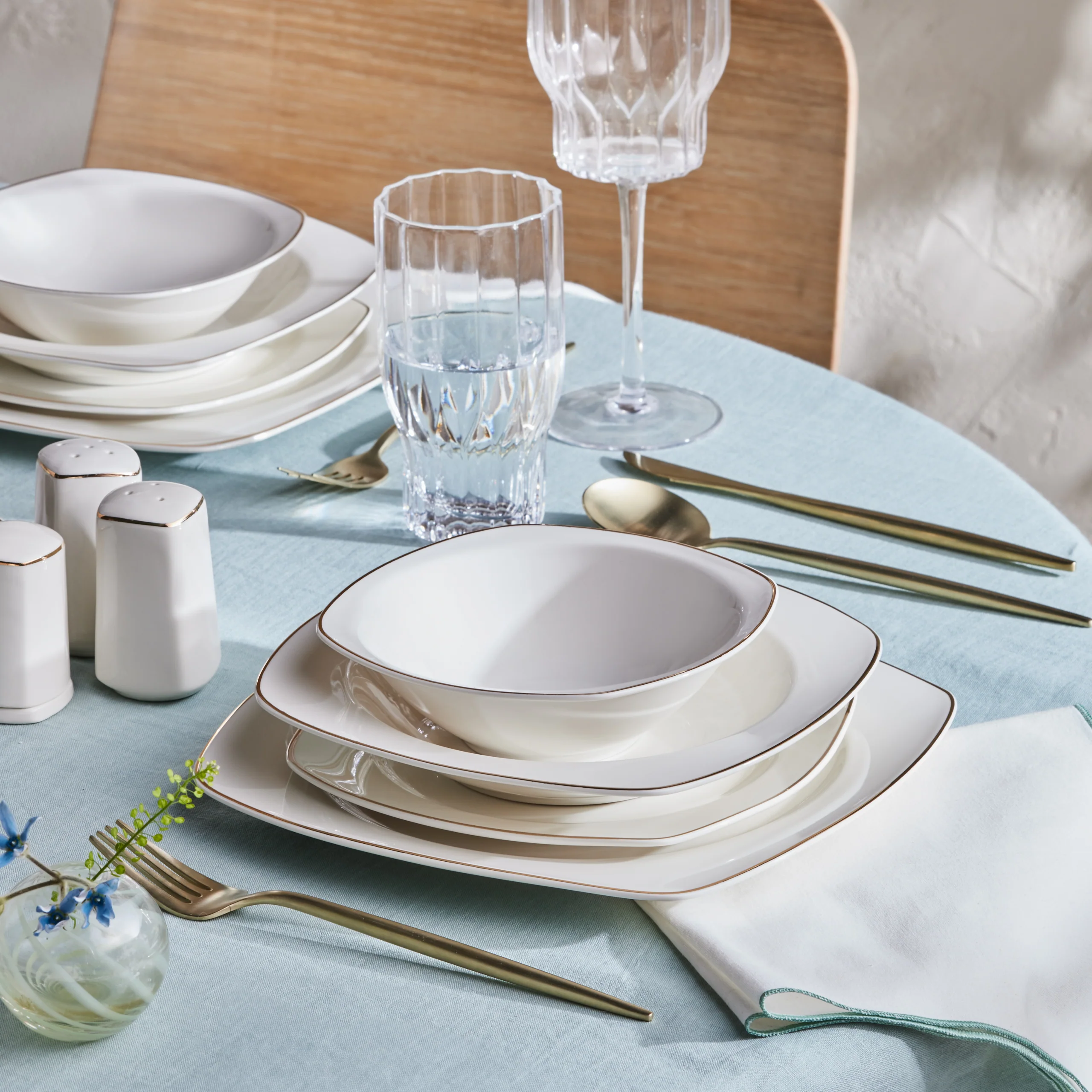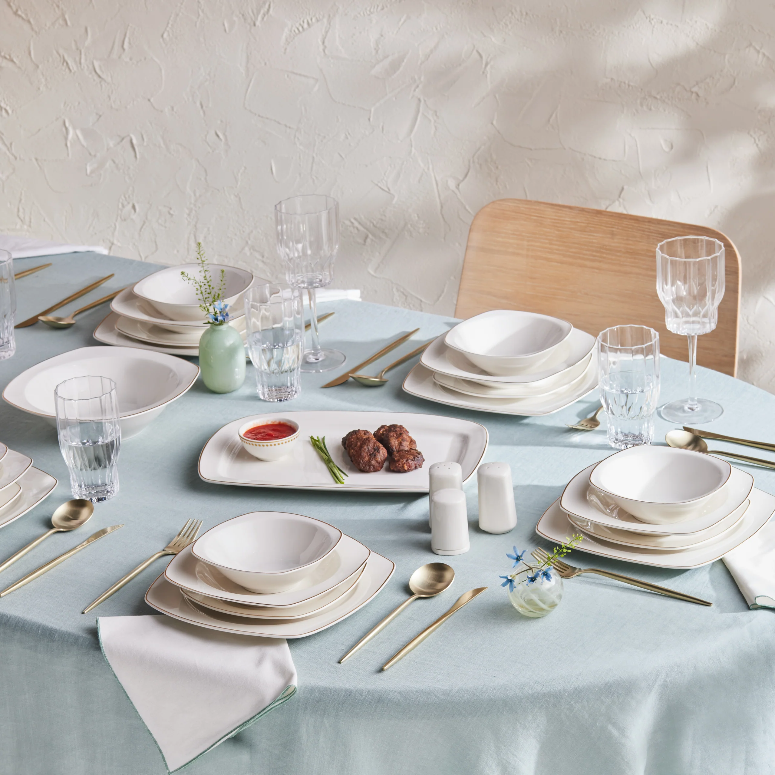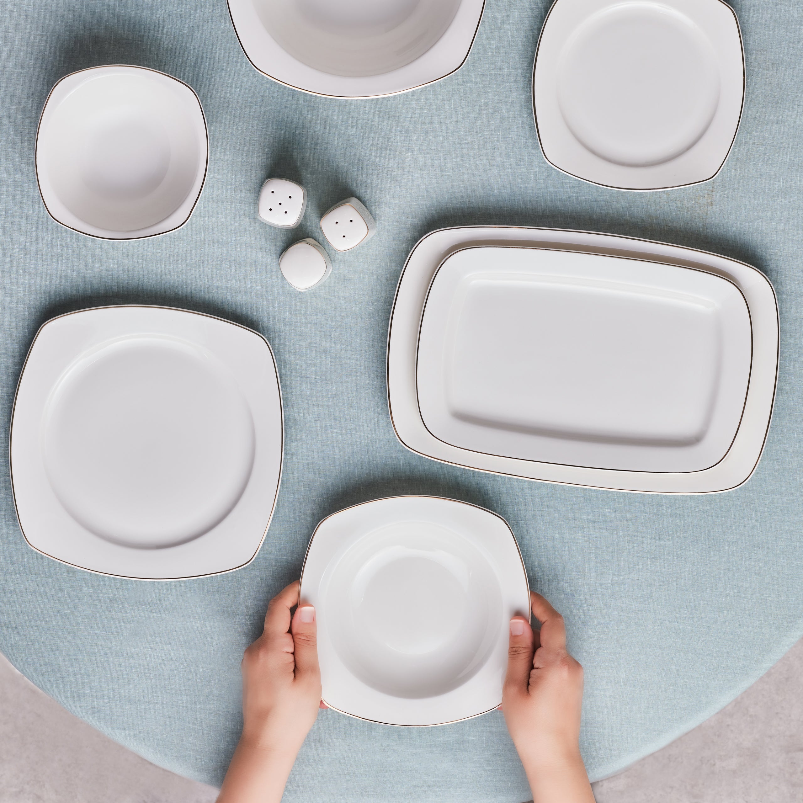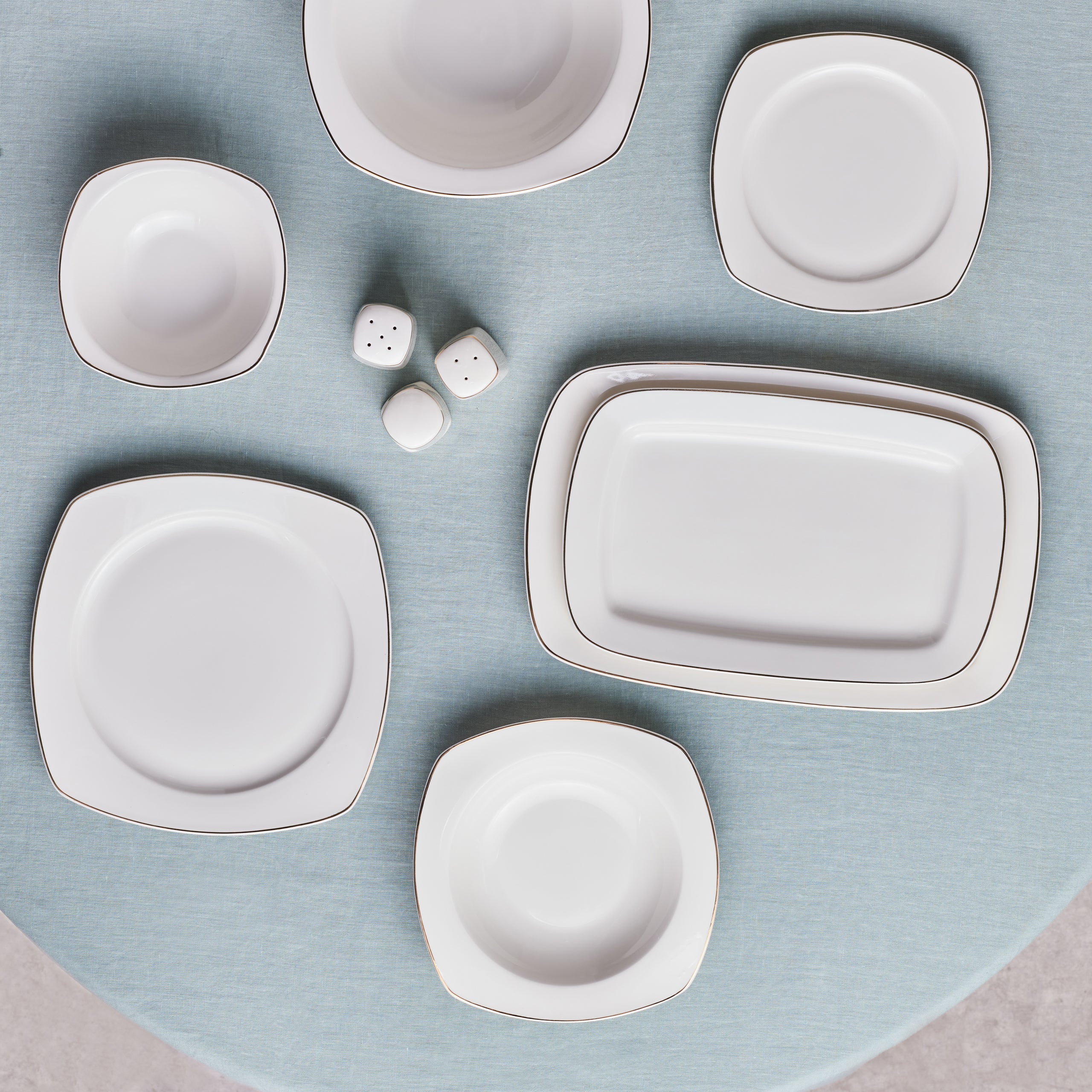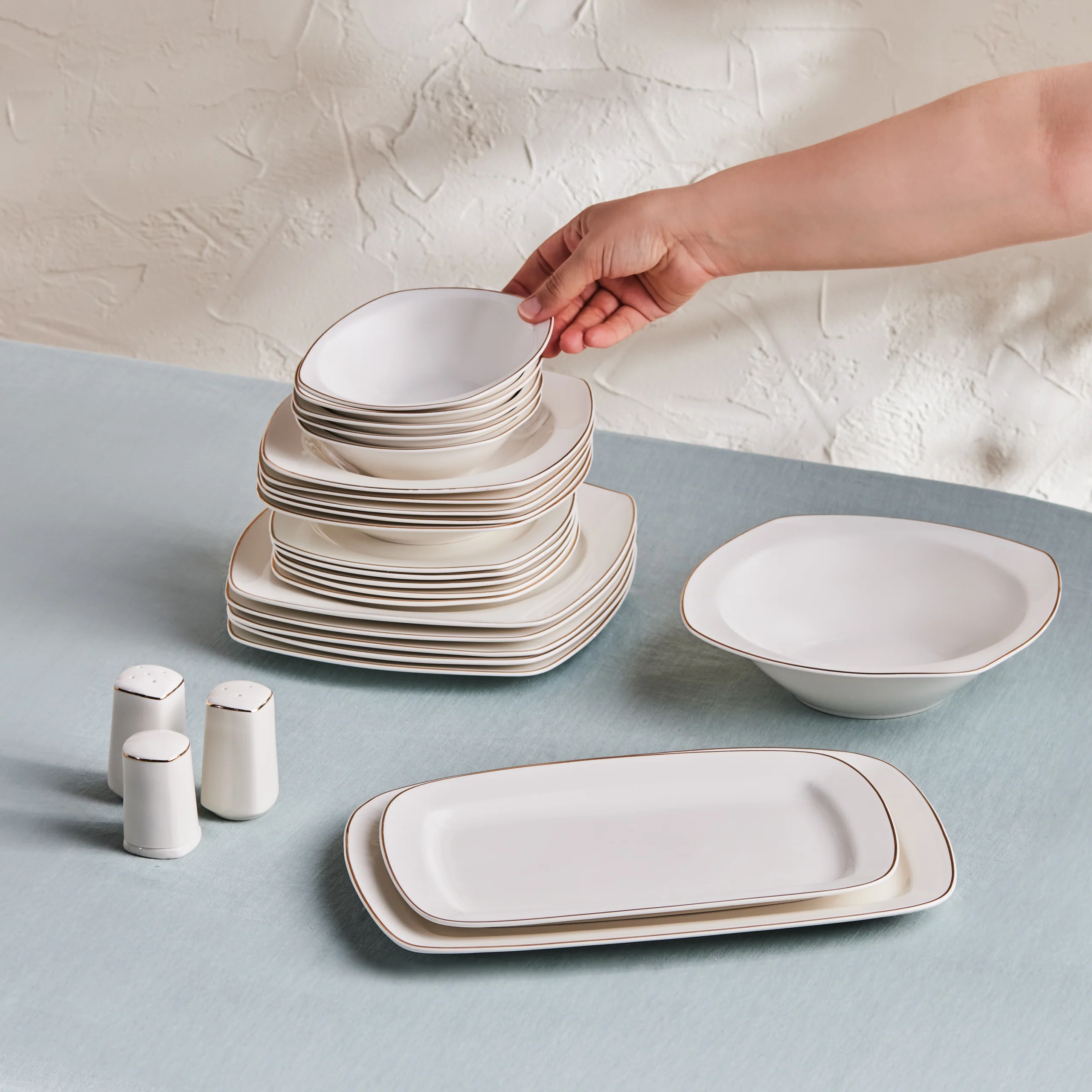 Karaca Timeless 59-teiliges Porzellan Halb-Quadratisches Dinner-Set für 12 Personen, Gold