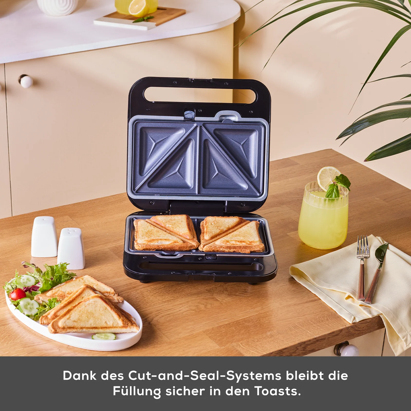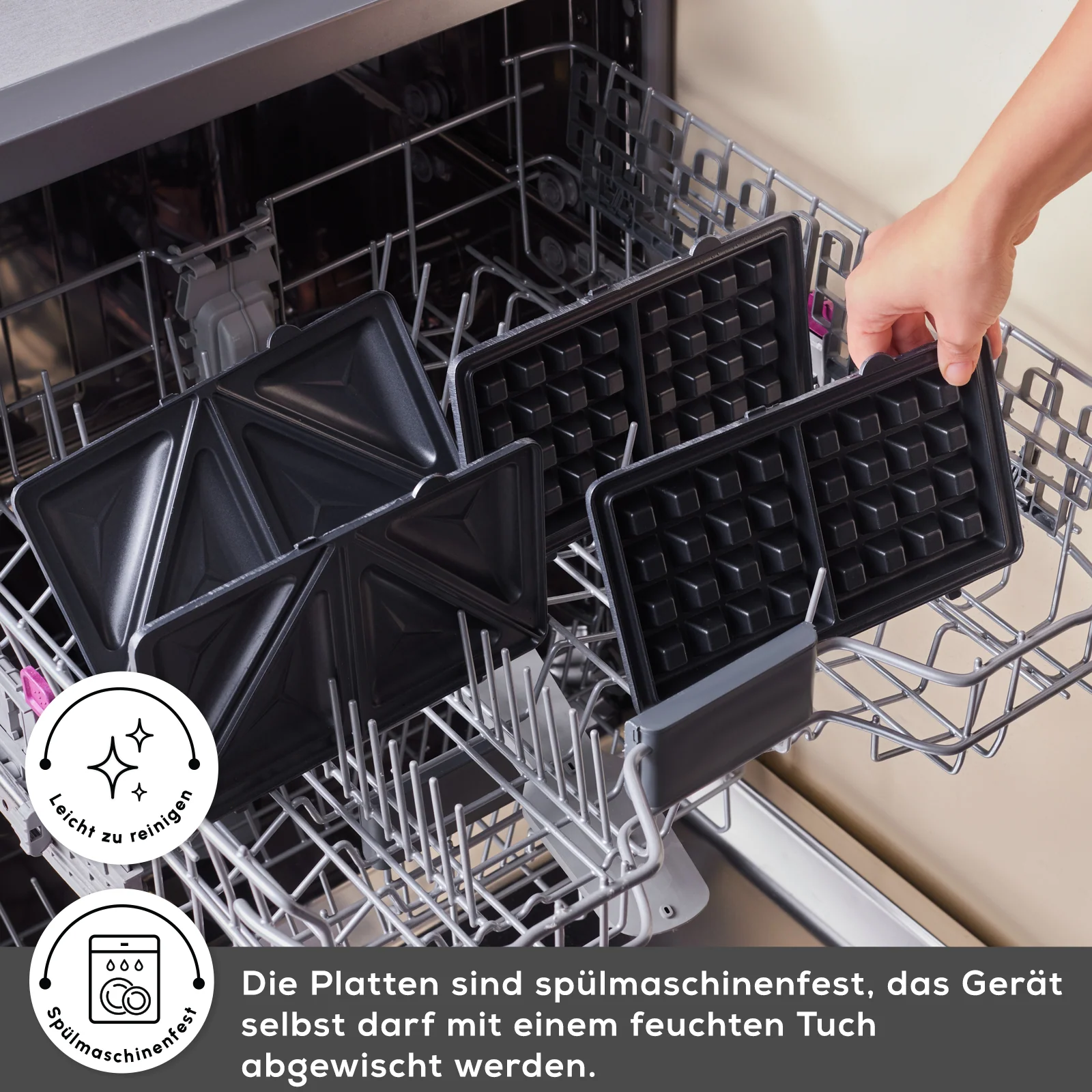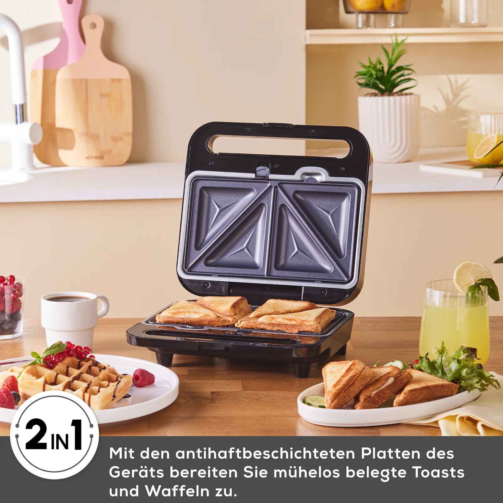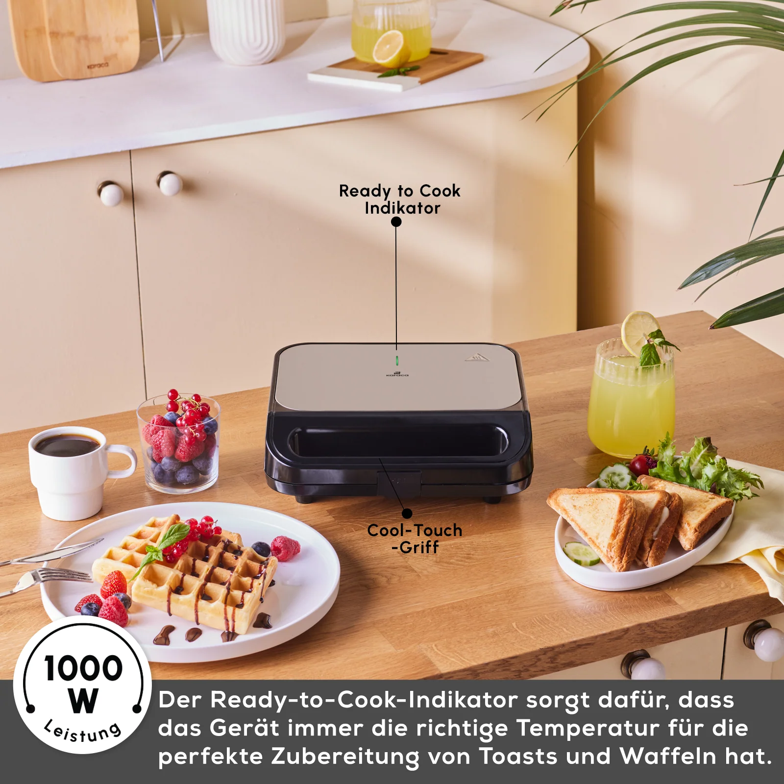 Die Karaca Tote Sandwich- und Waffelmaschine ist ein vielseitiges Küchengerät, das knusprige Waffeln und köstliche Sandwiches zubereitet. Mit einer Leistung von 1000 W heizt sie schnell auf und kocht effizient. Sie verfügt über zwei spezielle Funktionen, die ideal für die Zubereitung von Sandwiches und Waffeln geeignet sind. Dank ihres großzügigen Fassungsvermögens können Sie 2 Sandwiches oder 2 Waffeln gleichzeitig zubereiten. Die automatische Temperaturregelung sorgt dafür, dass Ihre Speisen perfekt und knusprig zubereitet werden. Rote und grüne Kontrollleuchten zeigen Ihnen den Heizstatus des Geräts an. Die Antihaftbeschichtung der Platten sorgt für optimale Ergebnisse und ermöglicht eine mühelose Reinigung. Die abnehmbaren oberen und unteren Platten sind spülmaschinengeeignet und bieten zusätzlichen Komfort.