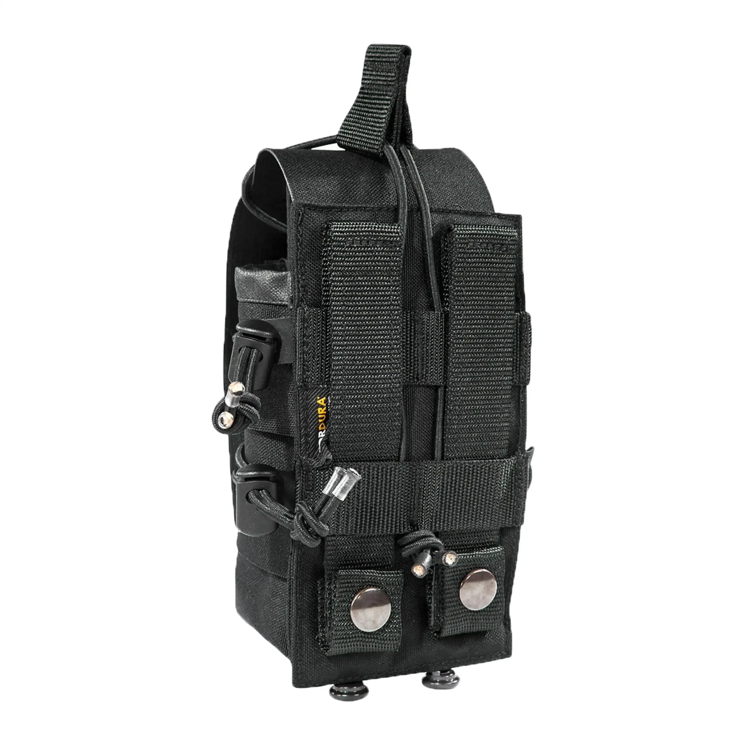 Komprimierbare Ersatz-Magazintasche mit abnehmbarer Deckelklappe (BEL-Version). Kann mit Klett- oder Steckverschluss geschlossen werden, je nachdem ob sie mit oder ohne Deckel verwendet wird. Passend für jeweils 2 G36-Magazine, AR15 etc. Benötigt zur Anbringung zwei Molle-Schlaufen.