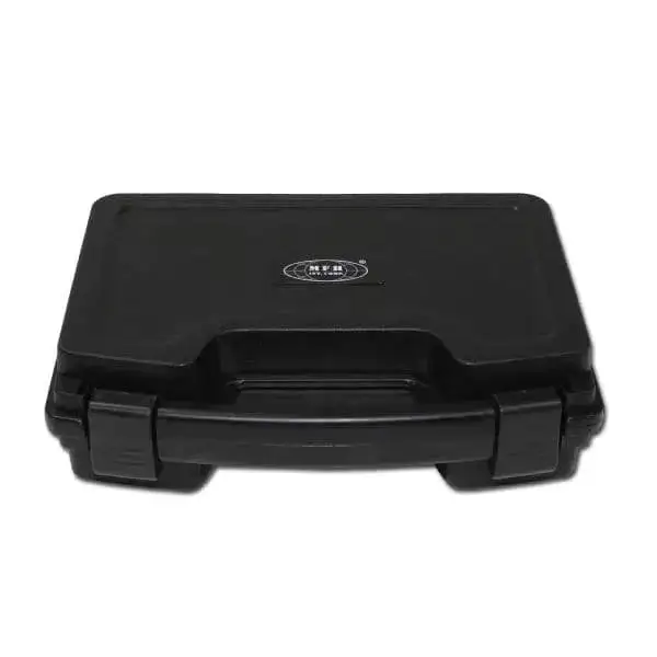 Der robuste MFH Pistolenkoffer Kunststoff klein kann mit bis zu zwei Vorhängeschlössern verschlossen werden, um den unberechtigten Zugriff auf Deine Waffen zu verhindern und die gesetzlichen Auflagen zum Transport zu erfüllen. Deckel und Boden sind jeweils mit einem Schaumstoffeinsatz versehen, der Stöße dämpft und das Kofferinnere schützt. Die Würfelkontur des Schaumstoffs dient der Fixierung der transportierten Gegenstände. Zwei Schnappverschlüsse verhindern ein unbeabsichtigtes Öffnen des Koffers zuverlässig.