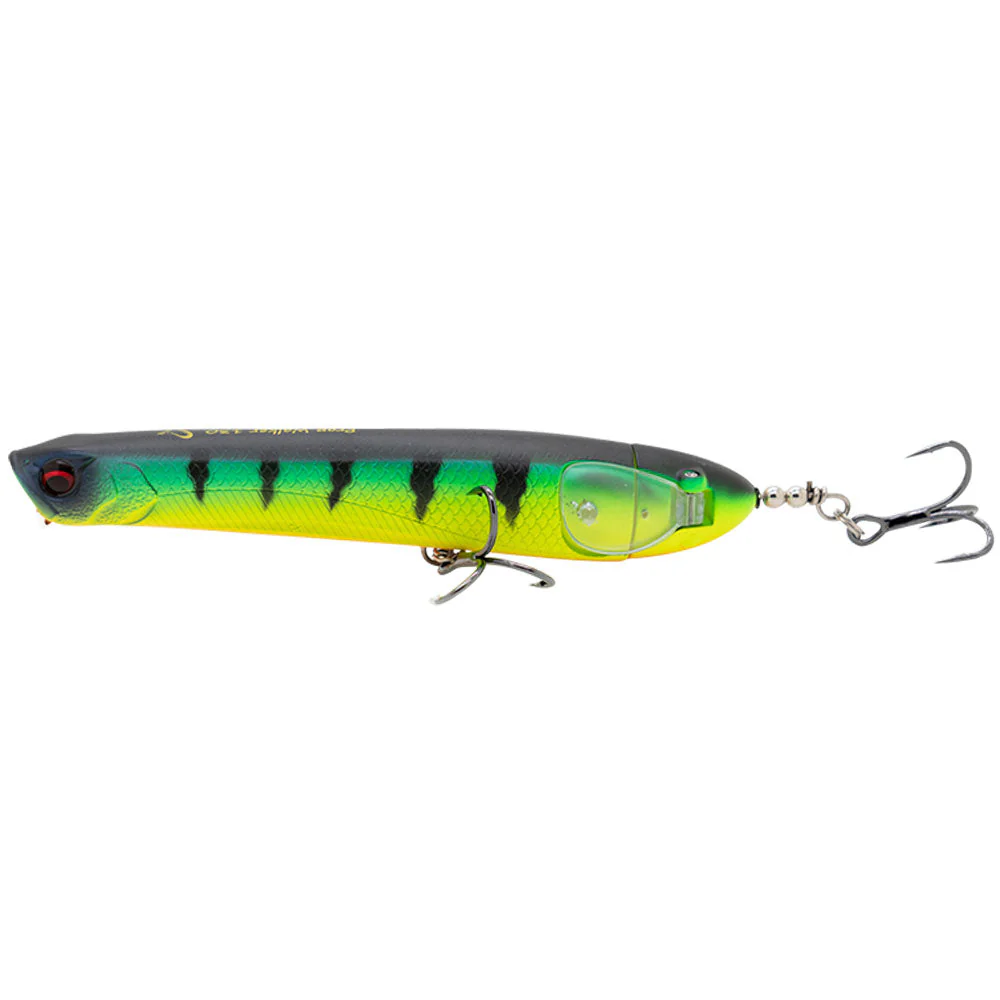 Der Savage Gear Prop Walker ist ein Hybrid aus verschiedenen Topwater-Ködern. Der längliche Körper eines Pencil Baits kombiniert mit einem dezenten Popper. Zusätzlich kann man ihn optional noch zum Prop Bait machen, indem man die PVC-Propeller ausklappt. Man hat also einen Prop Bait / Pencil Popper Hybriden in der Hand. So vielfältig wie die Bezeichnung ist auch die Anwendung. Mit eingeklappten Propeller kann man ihn dezent im Walk-The-Dog-Stil über das Wasser gleiten lassen. Immer mit einem dezenten Ploppen begleitet. Wenn man jedoch Action haben und die Fische provozieren will, dann werden die Propeller ausgeklappt und der Radau kann los gehen. Schnell kann man große Wasserflächen nach aktiven Räubern absuchen. Zum Black Bass Angeln entwickelt, verfehlt dieser Köder auch hier nicht seine Wirkung. Hecht, große Barsche und Rapfen schlagen da gerne mal zu.