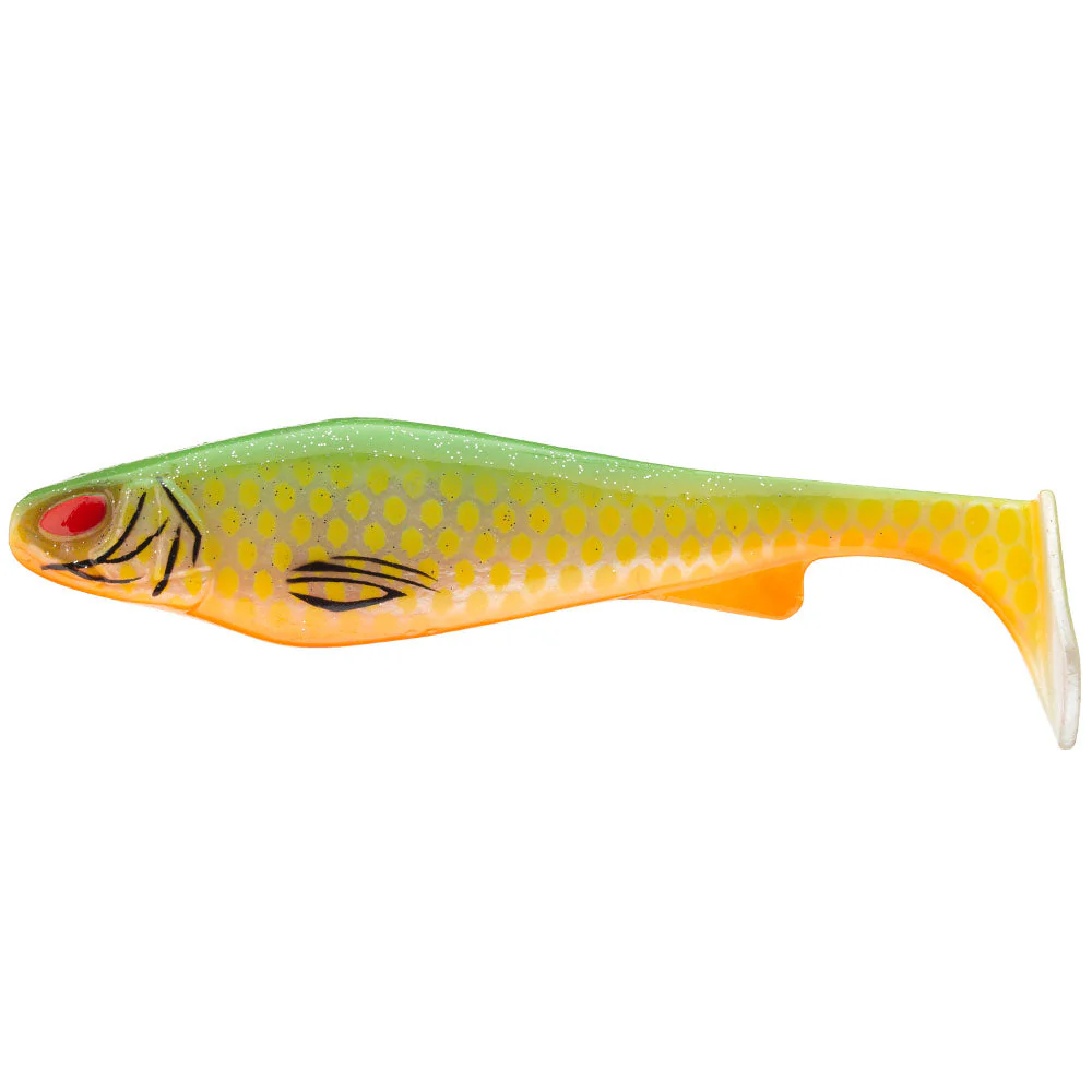 Der Daiwa Prorex Lazy Shad ist ein in 2 Größen erhältlicher Gummifisch, den Daiwa in intensiver Zusammenarbeit mit dem Daiwa Skandinavien Team entwickelt wurde. Dieser große Shad hat eine robuste, etwas steifere Gummimischung, was ein Überschlagen im Wurf verhindert und der Aktion zu Gute kommt. Durch diese Gummimischung überträgt sich die Aktion des großen Schaufelschwanzes direkter und besser auf den Körper des Lazy Shad. Dieser entwickelt dann eine stark flankende Rolling Action, welche bekanntermaßen insbesondere bei Hechten sehr gut ankommt. Dabei kann er sowohl am Jigkopf als auch am Shallow Rig und anderen Stinger Rigs gefischt werden, eignet sich also sowohl für tiefe als auch flache Bereiche.