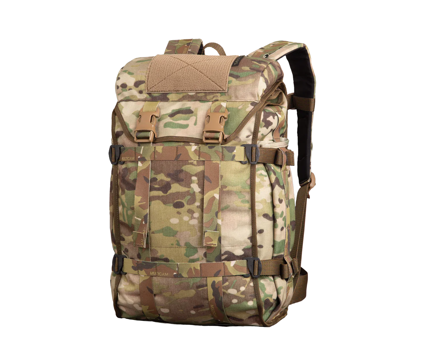 Ein durchdachter, absolut funktionaler und robuster Allround-Kampf-/Tagesrucksack, der den vielfältigen Tragebedürfnissen des regulären Soldaten gerecht wird. Gesamtvolumen mit gefüllten Seitentaschen ca. 30 Liter, mit vielen externen Befestigungspunkten für zusätzliches Zubehör.