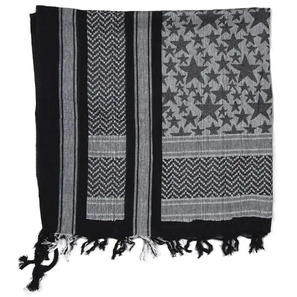 Schon fast als Grundausrüstung für viele Soldaten oder Outdoor Fans könnte man den Shemagh bezeichnen. Er dient sowohl als Kopftuch, Gesichtstarnung oder als Schal. Dieses Modell ist mit einem Sternmuster im Halsbereich ausgestattet und macht den Shemagh auch alltagstauglich.