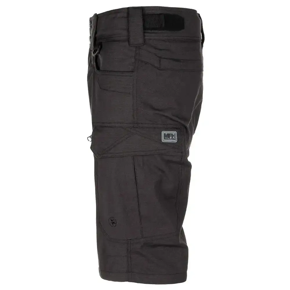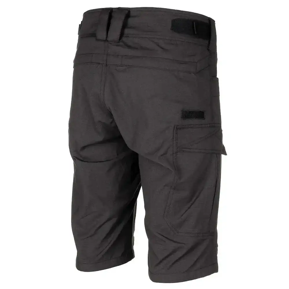 Bequeme Bermuda Shorts aus robustem RipStop-Material. Der elastische Bund mit 2 Druckknöpfen kann über ein Klettband in optimale Passform gebracht werden. Mit insgesamt 7 Taschen haben Sie reichlich Platz für persönliche Gegenstände.