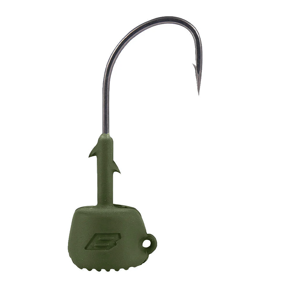 Der BKK Silent Chaser Ned Head hat eine halb im Kopf versenkte Öse. Dank dieser wird die Wahrscheinlichkeit reduziert, dass Unrat, abgestorbene Wasserpflanzen, Algen und ähnliches am Kopf hängen bleiben. Darüber hinaus schont es den Knoten, insbesondere bei der Verwendung an steinigen Untergründen. Am schmalen Schaft hat er 2 kleine Baitholder, welche wie kleine Stacheln jeden Ned Rig Köder fest halten. Dabei kann man insbesondere PTE Köder mit diesen Baitholdern besser aufziehen als mit herkömmlichen Metall-Baitholden. Ein weiteres Highlight sind die Rillen auf der Kopfseite. Diese erhöhen insbesondere auf hartem Untergrund das Feedback dank feiner Vibrationen, wenn der Kopf über Steine o.ä. rutscht. Der BKK Silent Chaser Ned Head ist ein innovativer Jigkopf für das Ned Rig, welcher hilft, noch ein paar Prozentpunkte näher an die optimale Köderkontrolle zu kommen.