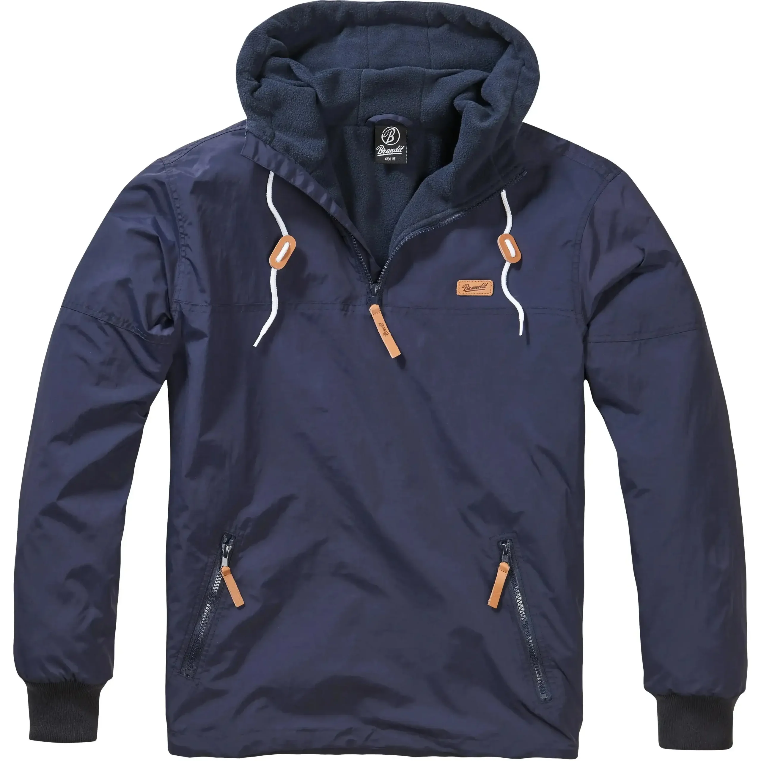 Der Windbreaker Luke von Brandit ist eine moderne Schlupfjacke für den Mann. Er ist wind- und wasserabweisend und dadurch für jede Wetterlage geeignet. Am Hals und seitlich der Jacke befindet sich je ein Reißverschluss, der das An- bzw. Ausziehen erleichtert, außerdem besitzt der Windbreaker auch eine Kapuze mit Tunnelkordelzug. Stauraum bieten die seitlichen Einschubtaschen mit Reißverschluss. Optisch wird die Jacke durch ein Brandit Leder Patch auf der Brust und Rippbündchen an den Ärmelenden abgerundet.